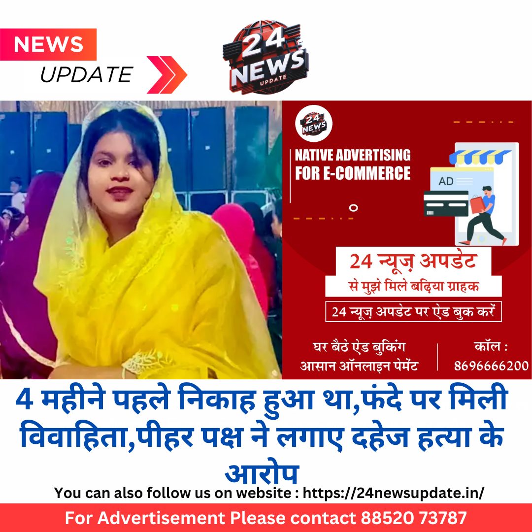 24 न्यूज़ अपडेट भीलवाड़ा. भीलवाड़ा में 20 साल की विवाहिता गुरुवार को अपने कमरे में फंदे पर मिली। उसकी निकाह 4 महीने पहले ही हुआ था। ससुराल वालों ने लड़की के पिता को फोन किया और कहा- तुम्हारी बेटी साहिबा ने फंदा लगा लिया है। परिजन पहुंचे तब तक मॉर्च्युरी में शव छोड़ ससुराल के लोग फरार हो गए थे। घटना जिले के प्रतापनगर थाना इलाके के पटेल नगर कम्युनिटी हॉल की है। पीहर पक्ष के लोगों ने ससुराल वालों पर बेटी को परेशान, करने दहेज के रुपए लाने और नहीं देने पर जान से मारने की धमकी देने और हत्या करने के आरोप लगाए हैं। विवाहिता की मौत की बाद से उसका पति फरार है। पुलिस के अनुसार- प्रताप नगर थाना क्षेत्र के पटेल नगर कम्युनिटी हॉल के पास रहने वाली साहिबा (20) गुरुवार रात अपने कमरे में फंदे पर लटकी मिली। सास-ससुर ने बहू को फंदे पर देखा तो वे उसे उतारकर हॉस्पिटल पहुंचे। जहां ड्यूटी डॉक्टर में उसे मृत घोषित कर दिया। सूचना मिलने पर प्रतापनगर थाना पुलिस हॉस्पिटल की मॉर्च्युरी पहुंची और जांच शुरू की। साहिबा के पिता ब्यावर निवासी इदरीस मोहम्मद ने कहा- ससुराल पक्ष ने बेटी की हत्या कर दी। प्रताप नगर थाने में एक रिपोर्ट दी है। बेटी साहिबा का निकाह 28 सितंबर 2024 को पटेल नगर भीलवाड़ा में रहने वाले से किया था। निकाह के बाद से दामाद और ससुराल के अन्य लोग उसे लगातार दहेज के लिए परेशान और मारपीट करते रहे। गुरुवार रात को उनका फ़ोन आया। कहा साहिबा का इंतकाल हो गया है। आप भीलवाड़ा हॉस्पिटल आ जाओ। हम जब हॉस्पिटल पहुंचे तो बेटी की डेथ हो चुकी थी और उसके ससुराल का कोई भी व्यक्ति हॉस्पिटल नहीं था । इन सभी के फ़ोन भी ऑफ हैं। इन लोगों ने दहेज के लिए हमारी बेटी की हत्या की है। पुलिस ने निकाह को 4 माह की अवधि होने और परिजनों द्वारा दहेज हत्या की रिपोर्ट पर एसडीएम की मोजूदगी में पोस्टमॉर्टम करवा शव परिजनों को सुपुर्द किया और मामला दर्ज कर जांच शुरू की।