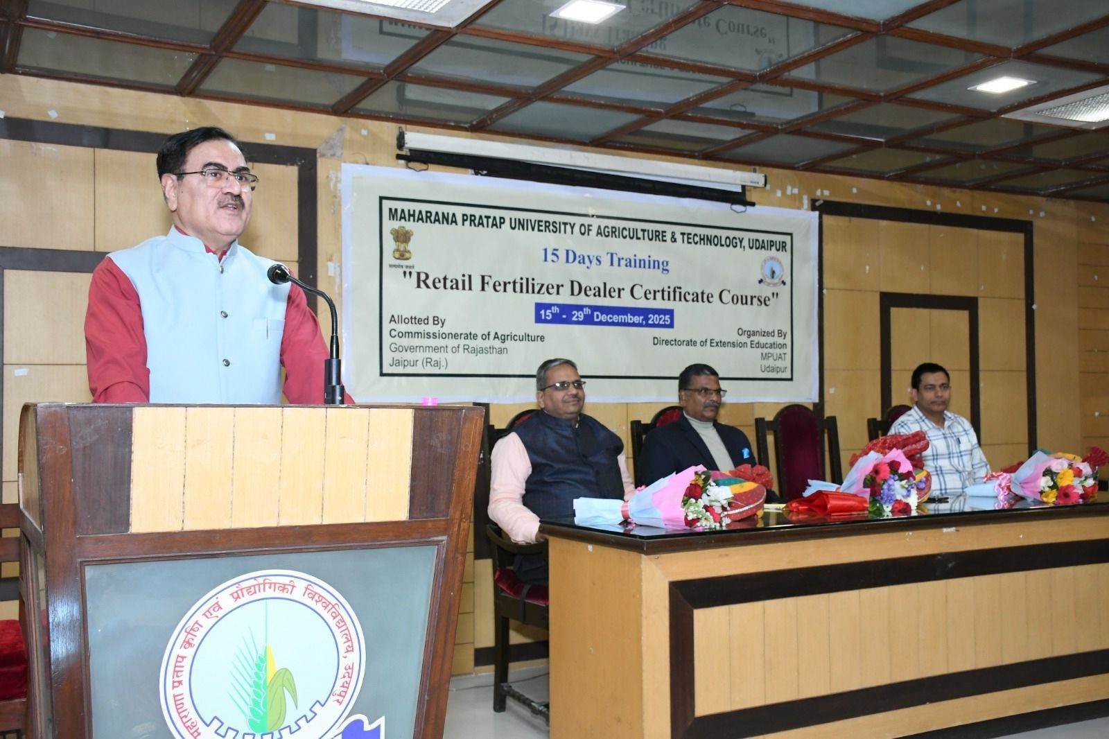 24 News Update उदयपुर। प्रसार शिक्षा निदेशालय, उदयपुर द्वारा आयोजित 15 दिवसीय खुदरा उर्वरक विक्रेता प्राधिकार-पत्र प्रशिक्षण का सफल समापन 29 दिसंबर 2025 को हुआ। यह प्रशिक्षण 15 दिसंबर से 29 दिसंबर 2025 तक आयोजित किया गया, जिसमें राज्य के विभिन्न जिलों से आए कुल 45 खुदरा उर्वरक विक्रेताओं ने भाग लिया।
