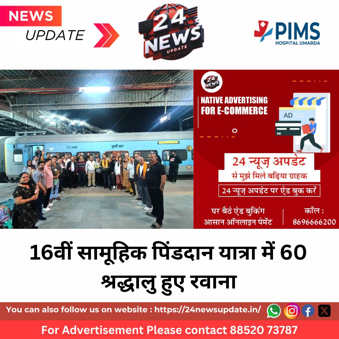 24 News Update उदयपुर। समाजहित में सतत कार्यरत सिंधु सामूहिक सेवा समिति द्वारा वर्ष 2016 से प्रारंभ की गई सामूहिक पिंडदान यात्रा की श्रृंखला निरंतर आगे बढ़ रही है। इसी क्रम में समिति की 16वीं सामूहिक पिंडदान यात्रा आज प्रातः उदयपुर सिटी रेलवे स्टेशन से 60 श्रद्धालुओं के साथ रवाना हुई। अब तक समिति 15 सफल यात्राएं संपन्न करा चुकी है।यह यात्रा 22 फरवरी तक चलेगी, जिसमें जयपुर, कोटा, बीकानेर, भीलवाड़ा और डूंगरपुर सहित विभिन्न शहरों के श्रद्धालु भाग ले रहे हैं। समिति का उद्देश्य समाज में व्याप्त कुरीतियों, दिखावे और अनावश्यक खर्चों पर रोक लगाते हुए सीमित व्यय में पूर्ण विधि-विधान व धार्मिक शुद्धता के साथ पिंडदान संस्कार संपन्न कराना है, ताकि हर वर्ग के परिवार इस पुण्य कार्य का लाभ ले सकें।समाज के लिए वरदान बनी यात्रासमिति सदस्य जगदीश निचलानी ने बताया कि सामूहिक आयोजन से मध्यमवर्गीय परिवारों पर आर्थिक बोझ कम होता है और सादगी का संदेश समाज तक पहुंचता है। अब तक 1000 से अधिक परिवार इस पहल से लाभान्वित हो चुके हैं, जिससे विभिन्न शहरों के लोगों के बीच आपसी एकता सुदृढ़ हुई है।राधा किशन खतुरिया द्वारा भोजन, नाश्ता और ठहराव की उत्तम व्यवस्थाएं सुनिश्चित की गई हैं, जिससे सभी श्रद्धालु सहजता से संस्कार संपन्न कर सकें।पूरी यात्रा के दौरान सेवा व मार्गदर्शन हेतु श्याम निचलानी, अशोक खतुरिया, राधाकृष्ण खतुरिया, महेश राजानी और मानसी खतुरिया उपस्थित रहकर व्यवस्थाएं संभाल रहे हैं। समिति की यह पहल संगठित प्रयासों से परंपराओं के सुलभ, सरल और सशक्त निर्वहन का प्रेरक उदाहरण बन रही है। Share this: Share on X (Opens in new window) X Share on Facebook (Opens in new window) Facebook More Email a link to a friend (Opens in new window) Email Share on WhatsApp (Opens in new window) WhatsApp Like this:Like Loading... Related Discover more from 24 News Update Subscribe to get the latest posts sent to your email. Type your email… Subscribe Post navigation आठवीं की परीक्षा कल से, आज से, पाँचवीं का मूल्यांकन कल से शुरू आकाश इंस्टीट्यूट उदयपुर का जेईई मेन में जलवा, 4 छात्रों की धमाकेदार कामयाबी, गार्गी पालीवाल टॉपर