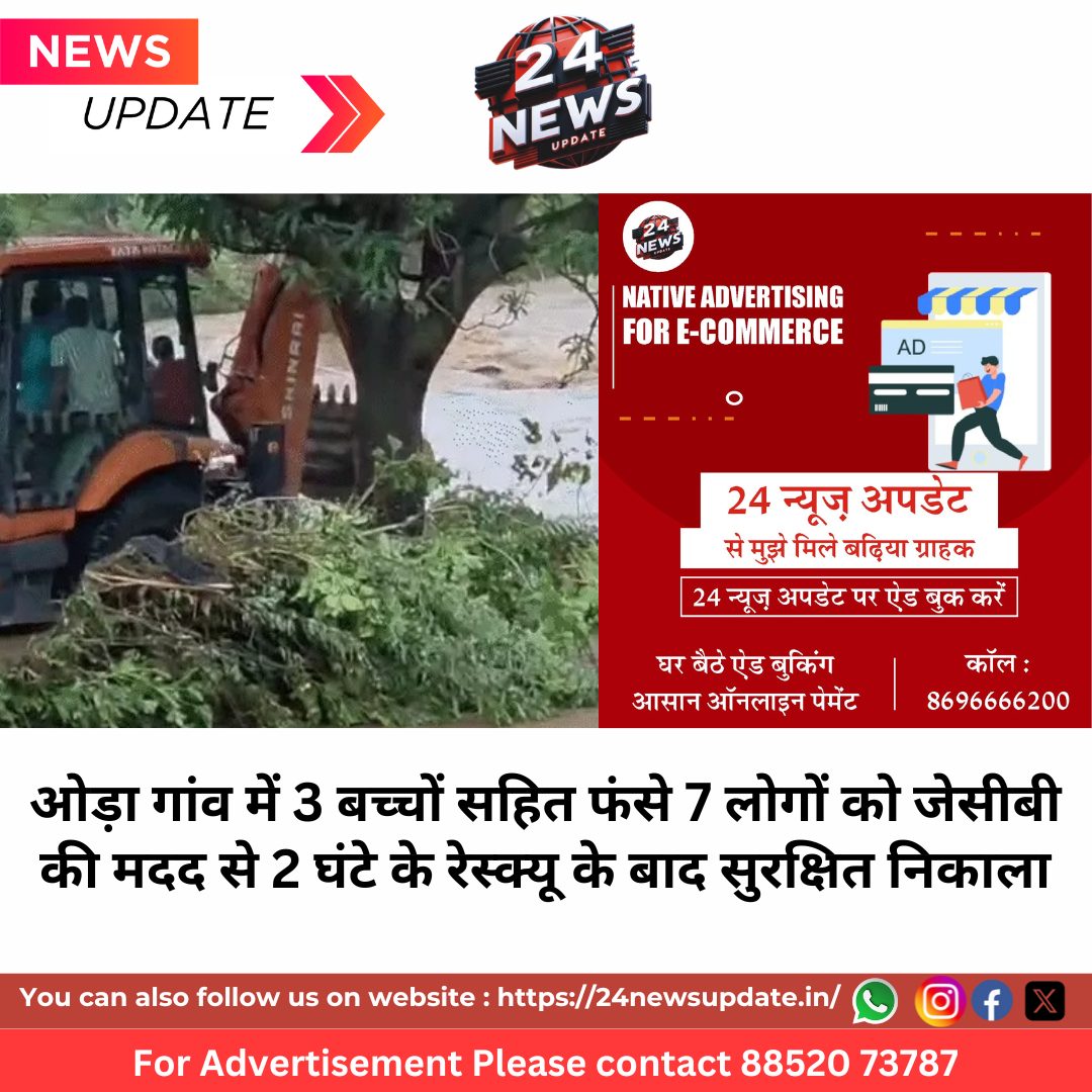 24 न्यूज अपडेट, कुंभलगढ़। राजसमंद जिले के कुंभलगढ़ क्षेत्र स्थित ओड़ा गांव में शुक्रवार दोपहर एक बड़ा हादसा हो गया। तेज बारिश के चलते दोपहर करीब 12ः30 बजे एक तालाब टूट गया, जिससे उसका पानी तेजी से बह निकला और एक स्कूली वैन उसकी चपेट में आ गई। वैन में तीन स्कूली बच्चे, एक ड्राइवर और दो अन्य लोग सवार थे। सभी लोग तेज बहाव में फंस गए। स्थानीय ग्रामीणों और प्रशासन ने तत्परता दिखाते हुए करीब दो घंटे तक रेस्क्यू ऑपरेशन चलाया। जेसीबी और सिविल डिफेंस की मदद से सभी को सुरक्षित बाहर निकाल लिया गया। कुछ बच्चों ने खुद को बचाने के लिए पास के पेड़ पर चढ़कर जान बचाई। घटना की सूचना मिलते ही पुलिस और प्रशासन मौके पर पहुंचे।गनीमत रही कि सभी को समय रहते बचा लिया गया, अन्यथा हादसा बड़ा हो सकता था। वैन जब बहाव में फंसी थी, तब पानी की गति कम थी, लेकिन कुछ ही देर में इसका अधिकतर हिस्सा पानी में डूब गया। कुंभलगढ़ क्षेत्र में शुक्रवार सुबह 6 बजे से मूसलधार बारिश हो रही है। अब तक 55 मिमी वर्षा दर्ज की जा चुकी है। बारिश से केलवाड़ा कस्बे की गलियों में जलभराव हो गया। बनोकड़ा का एनीकट तेज बहाव से लबालब हो गया है और फुटिया एनीकट से लाखेला तालाब में लगातार पानी आ रहा है। कुंभलगढ़ की ऐतिहासिक हमीरपाल झील भी ओवरफ्लो हो गई है। तेज हवाओं के कारण कुंभलगढ़ दुर्ग मार्ग पर पहाड़ से चट्टानें गिर गईं, जिससे यातायात बाधित हो गया। कुंभलगढ़-सायरा मार्ग को भी बारिश के चलते बंद करना पड़ा।वहीं, वेरो का मठ से परशुराम महादेव जाने वाले रास्ते पर बनी पुलिया से गुजरते समय एक महिला बरसाती नाले में बह गई। यह नाला वेरो का मठ कुंड की ओर जाता है। मौके पर मौजूद लोगों ने महिला को बचाने की कोशिश की, लेकिन वे सफल नहीं हो सके। प्रशासन ने लोगों से अपील की है कि वे बारिश के दौरान नदियों, नालों और पहाड़ी रास्तों के निकट न जाएं और आवश्यक सतर्कता बरतें। Share this: Share on X (Opens in new window) X Share on Facebook (Opens in new window) Facebook More Email a link to a friend (Opens in new window) Email Share on WhatsApp (Opens in new window) WhatsApp Like this:Like Loading... Related Discover more from 24 News Update Subscribe to get the latest posts sent to your email. Type your email… Subscribe Post navigation कुंभलगढ़ के ओडा गांव में तालाब फूटने से स्कूल वैन फंसी, कई बच्चे पेड़ पर चढे, परशुराम महादेव की ओर जाने वाले रास्ते पर महिला बही इंस्टाग्राम-व्हाट्सऐप पर मैसेज और वीडियो कॉल से परेशान कर रहा था शिक्षक, एपीओ