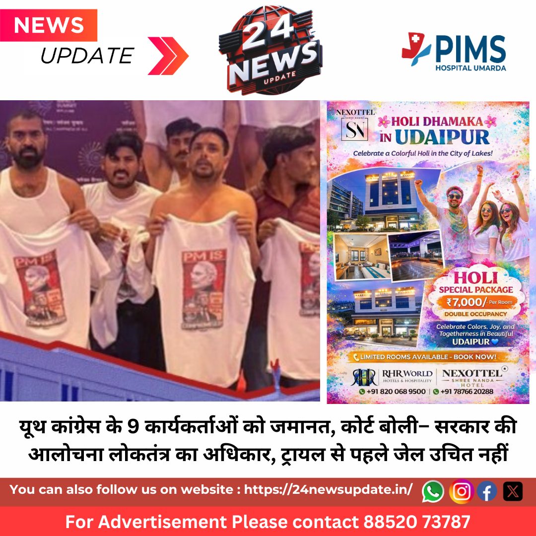 24 News Update नई दिल्ली। राजधानी नई दिल्ली में आयोजित AI Summit 2026 के दौरान हुए शर्टलेस विरोध प्रदर्शन के मामले में अदालत ने इंडियन यूथ कांग्रेस (IYC) के नौ कार्यकर्ताओं को जमानत दे दी। अदालत ने अपने आदेश में कहा कि सरकार की आलोचना लोकतांत्रिक व्यवस्था का हिस्सा है और केवल विरोध प्रदर्शन के आधार पर किसी व्यक्ति को मुकदमे से पहले जेल में रखना कानून की मूल भावना के विपरीत है।न्यायिक मजिस्ट्रेट प्रथम श्रेणी रवि ने जमानत याचिकाओं पर सुनवाई करते हुए कहा कि प्रदर्शन के दौरान लगाए गए नारे भड़काऊ नहीं थे और उनमें किसी प्रकार का धार्मिक या क्षेत्रीय रंग भी नहीं था। अदालत ने यह भी माना कि घटना के दौरान किसी तरह की तोड़फोड़ या आम लोगों को डराने-धमकाने का कोई प्रमाण सामने नहीं आया।अदालत ने अपने आदेश में स्पष्ट कहा कि अभिव्यक्ति की स्वतंत्रता नागरिकों का मूल अधिकार है और जेल केवल विशेष परिस्थितियों में ही होनी चाहिए। यदि बिना पर्याप्त कारण के किसी व्यक्ति को ट्रायल से पहले जेल में रखा जाता है तो यह बिना दोष सिद्ध हुए ही सजा देने जैसा होगा। इन नौ कार्यकर्ताओं को मिली राहतअदालत ने जिन नौ कार्यकर्ताओं को जमानत दी, उनमें कृष्ण हरि, नरसिंह यादव, कुंदन कुमार यादव, अजय कुमार सिंह, जितेंद्र सिंह यादव, राजा गुर्जर, अजय कुमार विमल उर्फ बंटू, सौरभ सिंह और अरबाज खान शामिल हैं। इन सभी को पुलिस ने विरोध प्रदर्शन के बाद गिरफ्तार किया था। पुलिस ने किया था जमानत का विरोधसुनवाई के दौरान दिल्ली पुलिस ने जमानत का विरोध करते हुए अदालत को बताया कि 20 फरवरी को भारत मंडपम में आयोजित कार्यक्रम के दौरान आरोपी कार्यकर्ता प्रधानमंत्री नरेंद्र मोदी और अमेरिकी राष्ट्रपति डोनाल्ड ट्रंप की तस्वीरों वाली टी-शर्ट पहनकर या हाथ में लेकर पहुंचे थे। पुलिस के अनुसार इन टी-शर्ट्स पर “PM is Compromised”, “India-US Trade Deal” और “Epstein Files” जैसे नारे लिखे थे। प्रदर्शन के दौरान नारेबाजी की गई और पुलिस द्वारा रोकने की कोशिश करने पर धक्का-मुक्की हुई, जिसमें कुछ पुलिसकर्मी घायल भी हुए। AI समिट के दौरान हुआ था प्रदर्शनदरअसल 20 फरवरी को भारत मंडपम में आयोजित AI Summit 2026 के दौरान इंडियन यूथ कांग्रेस के कार्यकर्ताओं ने भारत-अमेरिका ट्रेड डील के विरोध में प्रदर्शन किया था। प्रदर्शन के दौरान कार्यकर्ताओं ने टी-शर्ट उतारकर प्रधानमंत्री के खिलाफ नारे लगाए, जिसके बाद पुलिस ने तुरंत कार्रवाई करते हुए उन्हें हिरासत में ले लिया। पुलिस ने भारतीय न्याय संहिता (BNS) की विभिन्न धाराओं के तहत एफआईआर दर्ज की थी, जिनमें आपराधिक साजिश, सरकारी कर्मचारी को चोट पहुंचाना, हमला करना और सरकारी काम में बाधा डालने जैसे आरोप शामिल हैं। पहले भी हुई थीं गिरफ्तारियांइस मामले में उदय भानु चिब, जो इंडियन य