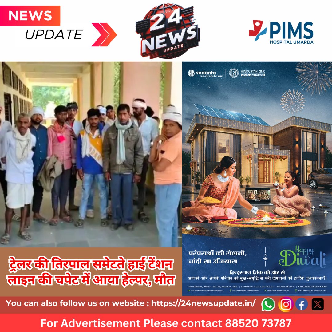 24 News Update डूंगरपुर। जिले के आसपुर थाना क्षेत्र के कतिसोर गांव में शनिवार को एक दर्दनाक हादसा हो गया। ट्रेलर पर काम कर रहे एक हेल्पर की हाई टेंशन लाइन की चपेट में आने से मौत हो गई। हादसा उस समय हुआ जब वह ट्रेलर के केबिन के ऊपर चढ़कर तिरपाल समेट रहा था। पुलिस ने शव का पोस्टमॉर्टम कर परिजनों को सौंप दिया है और घटना की जांच शुरू कर दी है।