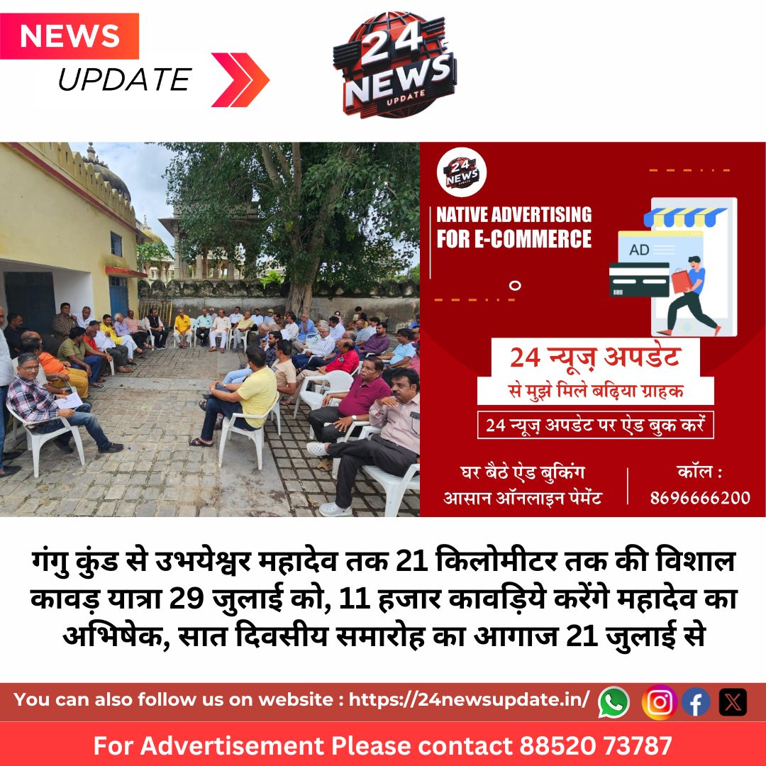 24 News Update उदयपुर/ शिव महोत्सव समिति की बैठक गंगा के चौथे पाये गंगु कुंड परिसर में अध्यक्ष यज्ञ नारायण शर्मा की अध्यक्षता में सम्पन्न हुई जिसमें शहर के सामाजिक, धार्मिक, राजनीतिक सदस्यों ने शिरकत की। शर्मा ने बताया कि हर वर्ष की भांति इस वर्ष भी श्रावण मास की नाग पंचमी पर आगामी 29 जुलाई को समिति की ओर से गंगा के चौथे पाये गंगु कुंड से उभयेश्वर महादेव तक की 21 किलोमीटर तक की निकाली जाने वाली 20वीं कावड़ यात्रा निकाली जायेगी। अच्छी को वर्षा लेकर 2006 में 50 मित्रों के साथ शुरू इस कावड़ यात्रा में इस वर्ष 11 हजार कावड़ियें उभयेश्वर महादेव का अभिषेक करेगे। कावड़ियों के अभिषेक के बाद गंगोत्री, जमनोत्री, मानाबोर्डर, सरस्वती, कैलाश मानसरोवर, भागीरथ नदी, मंदाकिनी के पवित्र पानी से महादेव का अभिषेक किया जायेगा। कावड़ यात्रा में हर वर्ग की भागीदारी हो इसके लिए समिति की ओर से सात दिवसीय कार्यक्रमों का आयोजन किया जायेगा जिसमें शहर के सामाजिक, धार्मिक, राजनीतिक सदस्यों को अपनी भागीदारी का मौका मिलेगा।