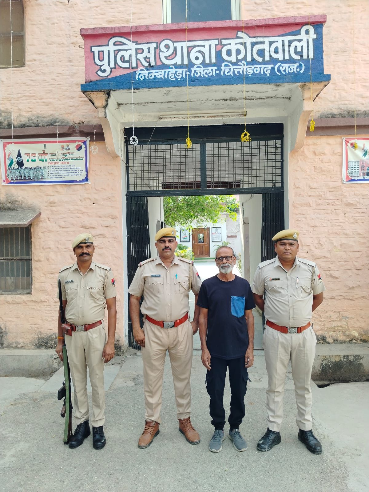 24 News Update निम्बाहेडा (कविता पारख)। कोतवाली निम्बाहेड़ा थानां पुलिस ने लड़ाई झगड़े के मामले में 28 साल से फरार स्थाई वारण्टी एमपी के उज्जैन निवासी जाकिर हुसैन को गिरफ्तार किया है। पुलिस अधीक्षक मनीष त्रिपाठी ने बताया कि महानिरीक्षक पुलिस उदयपुर रेन्ज उदयपुर द्वारा चलाये गये विशेष अभियान आपरेशन सुदर्शन चक्र में जिले के वांछित अपराधियों की धरपकड़ हेतु दिशा निर्देश प्रदान किये गये। जिस पर एएसपी सरिता सिंह व डीएसपी निम्बाहेड़ा बद्रीलाल राव के निर्देशन में थानाधिकारी कोतवाली निम्बाहेडा रामसुमेर मीणा पु.नि. के निर्देश पर एएसआई सूरज कुमार, कानि. वीरेंद्र, राकेश व सुमित द्वारा रविवार को न्यायालय जे.एम. कोर्ट निम्बाहेडा में वांछित आरोपी 60 वर्षीय जाकिर पुत्र जुदा हुसैन बोहरा निवासी जुना सिमरिया पत्ती बाजार थाना जीवाजी गंज जिला उज्जैन को गिरफतार किया गया है। उक्त अभियुक्त लड़ाई झगड़े के मामले में पिछले 28 साल से फरार चल रहा था।