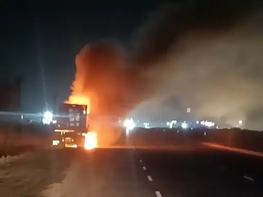 घटना रायला थाना क्षेत्र की है। प्रारंभिक जानकारी के अनुसार, जैसे ही ट्रेलर संगम मिल क्षेत्र से गुजर रहा था, ड्राइवर को अचानक जलते हुए धुएं की बदबू आई और ट्रक से चिंगारियां निकलती दिखाई दीं। खतरा भांपते ही चालक ने तुरंत वाहन को सड़क किनारे रोका और खिड़की से कूदकर अपनी जान बचाई। कुछ ही पलों में पूरा ट्रेलर आग की लपटों में घिर गया।