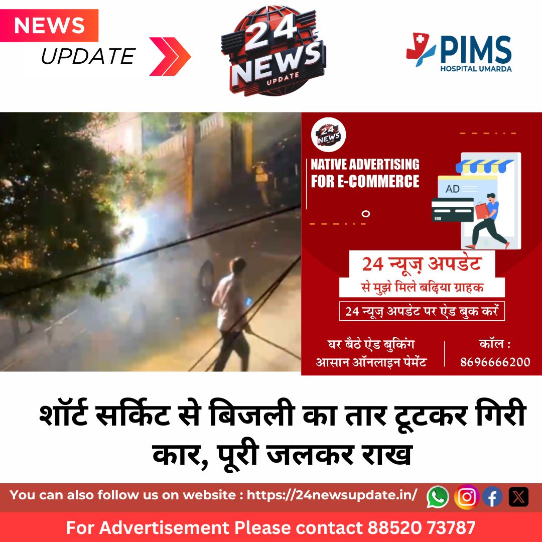 24 News Update उदयपुर। उदयपुर शहर के भूपालपुरा क्षेत्र में रविवार रात एक शॉर्ट सर्किट ने खड़ी कार को राख कर दिया। आयड़ नदी के पास पुलिस चौकी के समीप खड़ी कार पर अचानक ऊपर से गुजर रही बिजली की लाइन का तार टूटकर गिरा, जिससे कार में आग लग गई।