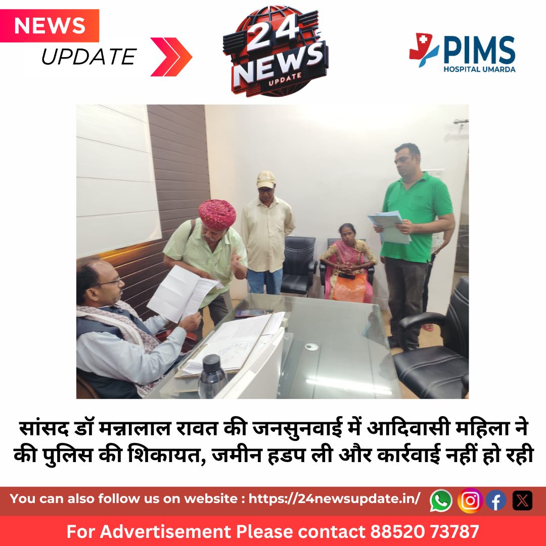 -सांसद ने एसपी को तत्काल फोन कर सुखेर थाना अधिकारी को निर्देशित करने को कहा-जन सुनवाई में आए 55 से ज्यादा परिवाद24 News Update उदयपुर। सांसद डॉ मन्नालाल रावत ने बुधवार को जिला परिषद स्थित सांसद जन सेवा केंद्र में जन सुनवाई की। जनसुनवाई में 55 से ज्यादा प्रतिनिधिमंडल ने अपनी मांगों को लेकर परिवाद दिया जिनमें कुछ का हाथों हाथ ही निबटारा किया गया। शहर के भुवाणा क्षेत्र के कालीमगरी की एक महिला ने उसके भूखंड पर कुछ लोगों द्वारा कब्जा करने तथा सुखेर पुलिस द्वारा इस मामले में शिकायत करने के बावजूद कोई कार्रवाई नहीं करने पर सांसद डॉ रावत ने तत्काल एसपी योगेश गोयल से बात की और उन्हें इस मामले में कार्रवाई करने व महिला को न्याय दिलाने के निर्देश दिए।सांसद डॉ रावत की जनसुनवाई में जिला परिषद से संबंधित 12 मामले आए जबकि यूडीए, नगर निगम, पीएचईडी, पीडब्ल्यूडी, जिला प्रशासन, पुलिस प्रशासन तथा रोडवेज से संबंधित मामले आए। कालीमगरी पंचायत भुवाणा निवासी फूलवंती गमेती ने सांसद के सामने जनसुनवाई में बताया कि उसके पिता ने कालीमगरी में भूखण्ड खसरा नम्बर 4106 मी. किशन सालवी से 1990 में खरीदा था। उसके बाद वहां पर उनका कब्जा था, लेकिन बीच में जब वहां सफाई करने गए तब भूपेंद्र सिंह राव नामक व्यक्ति ने अपना कब्जा बता दिया। इसको लेकर एसपी को परिवाद दिया जिस पर मुकदमा दर्ज कर कार्रवाई के निर्देश दिए, लेकिन आज तक इस पर कोई कार्रवाई नहीं हुई। फूलवंती ने सांसद को बताया कि वे कई बार सुखेर थाने में जा चुके हैं, लेकिन कोई कार्रवाई नहीं होती। महिला को भावुक देखकर सांसद ने कार्रवाई का आश्वासन दिया। उन्होंने उसी वक्त एसपी को फोन कर इस मामले में सुखेर थाना अधिकारी को निर्देशित करने को कहा।कल्याणपुर कस्बा एवं पुंडा क्षेत्र में नेटवर्क सुविधा को लेकर सांसद को परिवाद दिया गया जिसमें बताया कि कल्याणपुर कस्बे सहित चुंडा क्षेत्र के अंतर्गत लगभग 28 गांवों में नेटवर्क सुविधा की गंभीर समस्या बनी हुई है। यहां बीएसएनएल एवं जिओ की सेवाएं अत्यंत बाधित रहती हैं। बिजली गुल होने पर दोनों ही नेटवर्क पूर्णतः बंद हो जाते हैं।शहर में कार्तिकेय कालोनी निवासी कमला पानेरी की ओर से मकान का पट्टा नहीं बनाने की शिकायत की गई। बताया कि पूर्व में शिविरों में भी आवेदन किया गया, लेकिन कोई कार्रवाई नहीं हुई। इस पर सांसद ने यूडीए को कार्रवाई के लिए पत्र लिखा। प्रतापनगर निवासी दिलीप कुमार सपरा व अन्य ने प्रतापनगर क्षेत्र में भूखंड के आसपास मूलभूत सुविधाए, पानी, बिजली एवं सड़क उपलब्ध नहीं होने को लेकर परिवाद दिया जिस पर यूडीए को कार्रवाई के लिए पत्र लिखा। चावंड ग्रामवासियों ने अपने परिवाद में जयसमंद पेयजल योजना का पानी डिंगरी से सीधे चावण्ड जोडने की मांग 