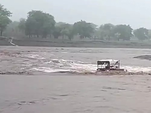 तेज बहाव में ट्रैक्टर बंद, ड्राइवर बह गया