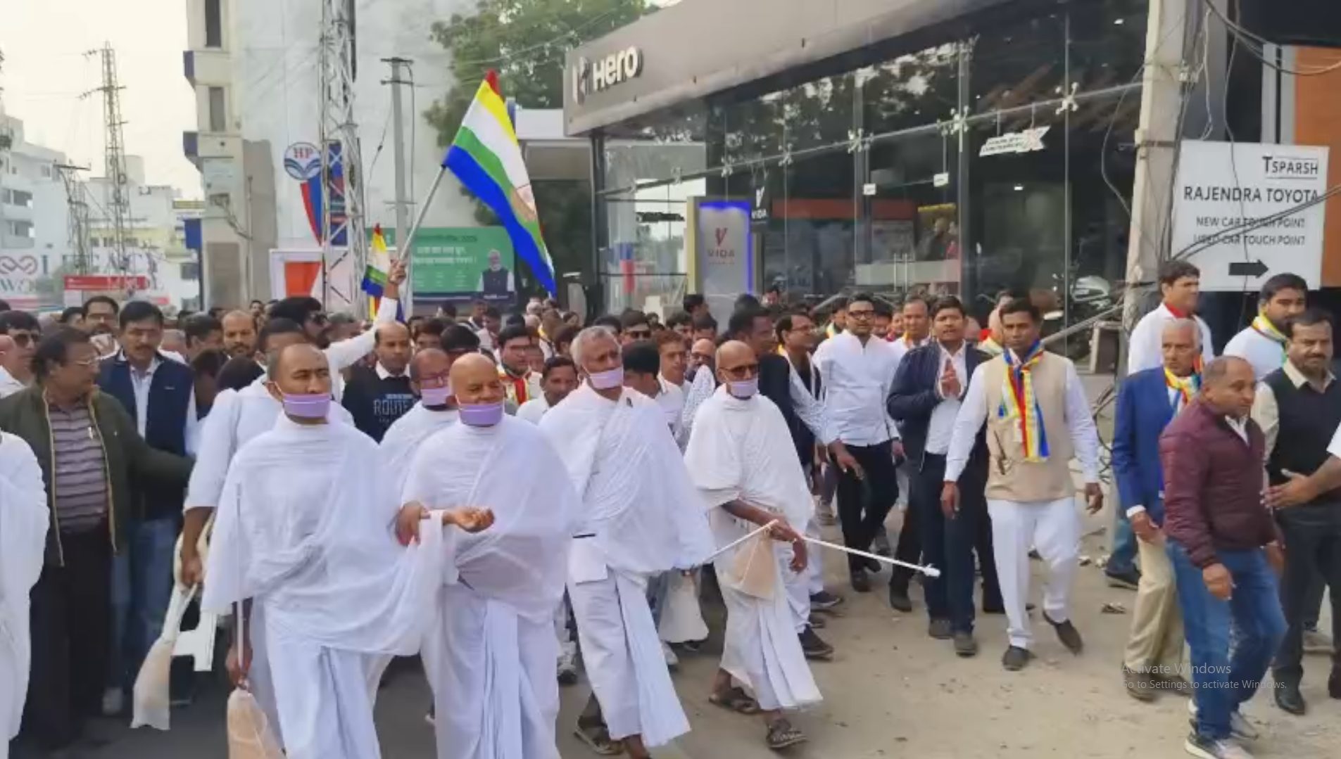 - ढाई घंटे की विहार यात्रा में हजारों भक्तों ने की अगवानी, महाप्रज्ञ विहार में कदम रखते ही जयकारा लगा
