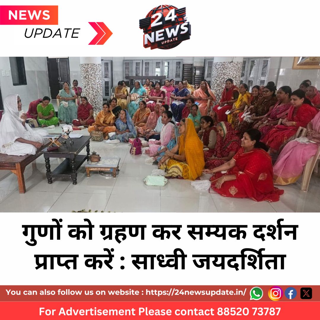 आयड़ तीर्थ के आत्म वल्लभ सभागार में गुरुवार को आयोजित धर्मसभा में साध्वी जयदर्शिता श्रीजी ने प्रवचन में बताया कि धर्म से मोक्ष की प्राप्ति होती है, और धर्म प्राप्ति का उपाय है साधु भगवंतों का संघ। इनके सत्संग से जीव को सम्यक दर्शन ज्ञान-चारित्र की प्राप्ति होती है। भगवान श्री ऋषभ देव का जीव धन सार्थवाह के भव में सार्थ लेकर निकलते हैं। उनके साथ आचार्य भगवंत अपने परिवार के साथ पधारे हैं। कलिकाल सर्वम श्री त्रिपष्टि चरित्र में महात्मा बताते है कि जब धन सार्थवाह आचार्य भगवंत अपने परिवार के साथ पधारे हैं को वंदन करने जाते हैं तब देखते हैं कि कोई। स्वाध्याय कर रहे हैं, कोई महात्मा वैयावच्च कर रहे है तो कोई महात्मा कायोत्सर्ग में, ध्यान में लीन हैं। इस दृश्य को देखकर उनका मन हिल जाता है। उन्हें महात्माओं के प्रति अपूर्व आदर भाव जागता है और वहाँ उन साधुओं की भक्ति करते हुए उन्हें सम्यक दर्शन प्राप्त होता है उन्होंने महात्माओं के गुणों को देखा इसलिए उन्हें बोधि की प्राप्ति हुई थी। हमें भी महात्माओं के पास जब-जब भी जाने का सुअवसर प्राप्त होते, हमें गुणों की ग्रहण करना है। चिलाती पुत्र को तीन शब्दों में ही धर्म का बोध हो गया था। हमने तीन शब्द नहीं तीन हजार शब्द सुन लिए लेकिन फिर भी हमारे पर असर क्यों नहीं हुआ? हमारा चित्त, हमारा मन ही उपशांत नहीं है तो उपदेश का असर कैसे होगा।
