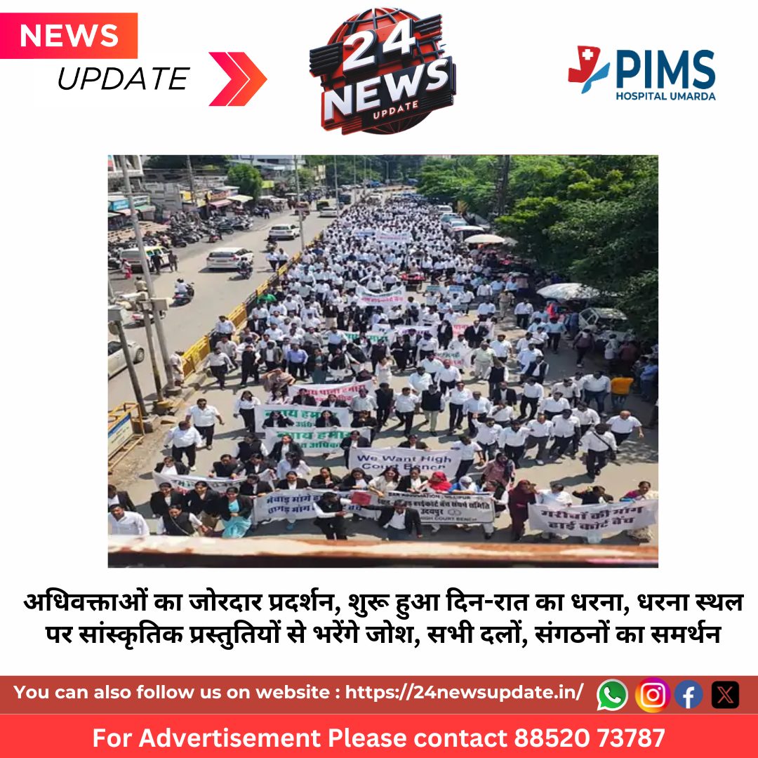 24 News Update उदयपुर। बीकानेर में हाईकोर्ट की वर्चुअल बेंच की संभावित घोषणा की खबर के बाद उदयपुर में आक्रोश फूट पड़ा है। मेवाड़-वागड़ हाईकोर्ट बेंच संघर्ष समिति एवं बार एसोसिएशन उदयपुर के आह्वान पर शुक्रवार को अधिवक्ताओं ने ज़िला एवं सत्र न्यायालय से विशाल जुलूस निकाला और संभागीय आयुक्त कार्यालय पर अनिश्चितकालीन धरना शुरू किया। अधिवक्ताओं ने मांग की कि यदि बीकानेर में बेंच की घोषणा होती है तो उदयपुर में भी साथ ही बेंच स्थापित की जाए, अन्यथा आंदोलन उग्र रूप लेगा।