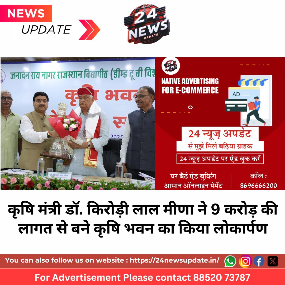 जैविक खेती, अनुशासन और परंपरा-नवाचार का समन्वय ही है भविष्य का मार्ग: कृषि मंत्री बीएड महाविद्यालय द्वारा प्रकाशित ‘शांति, विचार एवं क्रिया’ पुस्तक तथा कृषि विवरणिका का विमोचन 24 News Update उदयपुर. राजस्थान विद्यापीठ विश्वविद्यालय के संघटक एग्रीकल्चर महाविद्यालय में 9 करोड़ रुपये की लागत से निर्मित आधुनिक कृषि भवन का लोकार्पण गुरुवार को राजस्थान सरकार के कृषि मंत्री डॉ. किरोड़ी लाल मीणा, कुलपति कर्नल प्रो. शिवसिंह सारंगदेवोत और कुलाधिपति भंवरलाल गुर्जर ने संयुक्त रूप से किया। लोकार्पण समारोह में भवन की पट्टिका का अनावरण किया गया तथा पारंपरिक रूप से अतिथियों का स्वागत किया गया।समारोह की शुरुआत एनसीसी कैडेट्स के गार्ड ऑफ ऑनर से हुई, इसके बाद अतिथियों ने परिसर में ‘मां’ के नाम पर एक पौधा भी रोपा। विद्यार्थियों ने राजस्थानी गीतों पर रंगारंग सांस्कृतिक प्रस्तुतियाँ देकर माहौल को जीवंत कर दिया। अनुशासन और जैविक कृषि ही है भविष्य की सही राह” – डॉ. किरोड़ी लाल मीणा अपने संबोधन में कृषि मंत्री डॉ. मीणा ने कहा कि आज के बदलते समय में कृषि, शिक्षा और जीवनशैली सभी क्षेत्रों में व्यापक बदलाव की आवश्यकता है। विद्यार्थियों को तकनीकी दक्षता के साथ नैतिकता, पर्यावरण चेतना और राष्ट्र प्रेम जैसे मूल्यों से भी जोड़ा जाना चाहिए। उन्होंने कहा, “आज गरीबों का खाना अमीरों की पसंद बन चुका है। बड़े होटलों में पहुंचते ही सबसे पहले पारंपरिक देसी व्यंजन जैसे सूप या बाजरा परोसा जाता है।” उन्होंने रासायनिक खेती पर चिंता जताते हुए कहा कि खेतों की उर्वरा शक्ति लगातार घट रही है, जिससे खाद्य गुणवत्ता और लोगों का स्वास्थ्य दोनों प्रभावित हो रहे हैं। डॉ. मीणा ने कहा, “रासायनिक उत्पादन के कारण हर व्यक्ति किसी न किसी रोग से ग्रसित है, और देश महामारी की ओर बढ़ रहा है।” इस समस्या के समाधान हेतु उन्होंने प्राकृतिक, बायो और ऑर्गेनिक खेती को प्रमुख विकल्प बताया और जीएपी (Good Agricultural Practices) अपनाने पर बल दिया। कृषि मंत्री ने केंद्र व राज्य सरकार की विभिन्न किसान-कल्याणकारी योजनाओं का उल्लेख करते हुए कहा कि इन योजनाओं को जमीनी स्तर तक पहुँचाना बेहद जरूरी है, और इसके लिए संस्थानों को किसानों की पैरवी करनी चाहिए। “परंपरा और नवाचार के समन्वय से कृषि शिक्षा को नई दिशा दे रहा है विद्यापीठ” – प्रो. सारंगदेवोत समारोह में कुलपति प्रो. एस.एस. सारंगदेवोत ने कहा कि विद्यापीठ का उद्देश्य भारतीय परंपरागत कृषि प्रणाली को आधुनिक तकनीकी नवाचारों के साथ समन्वित कर एक आदर्श कृषि शिक्षा मॉडल विकसित करना है। उन्होंने बताया कि विद्यापीठ का स्कूल ऑफ एग्रीकल्चरल साइंसेज निम्नलिखित महत्वपूर्ण पहलुओं पर कार्य कर रहा है: टिकाऊ (Sustainable) कृषि प