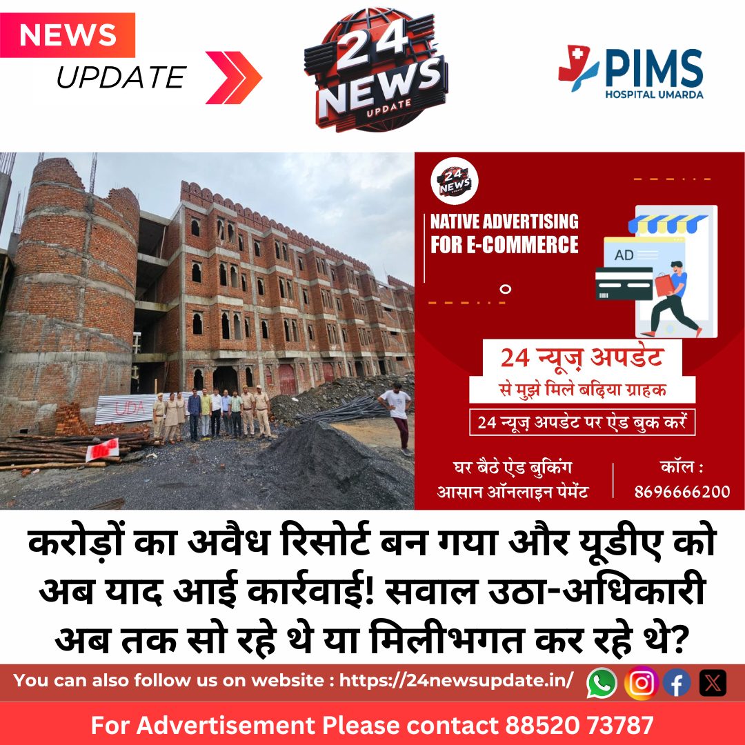 24 न्यूज अपडेट, उदयपुर। उदयपुर विकास प्राधिकरण (यूडीए) ने शुक्रवार को ग्राम पंचायत नाई के राजस्व गांव नोहरा में बहुमंजिला रिसोर्ट को सीज कर दिया। कागजों पर यह कार्रवाई बड़ी लग रही है, लेकिन असल सवाल यह है कि आखिर इतने बड़े स्तर पर करोड़ों रुपए का निर्माण हो गया और यूडीए के अधिकारी व कर्मचारी अब तक आंखें मूंदकर बैठे रहे। यदि अनुमति ही नहीं थी, तो क्या प्राधिकरण के किसी कार्मिक ने इस निर्माण को होते हुए नहीं देखा?