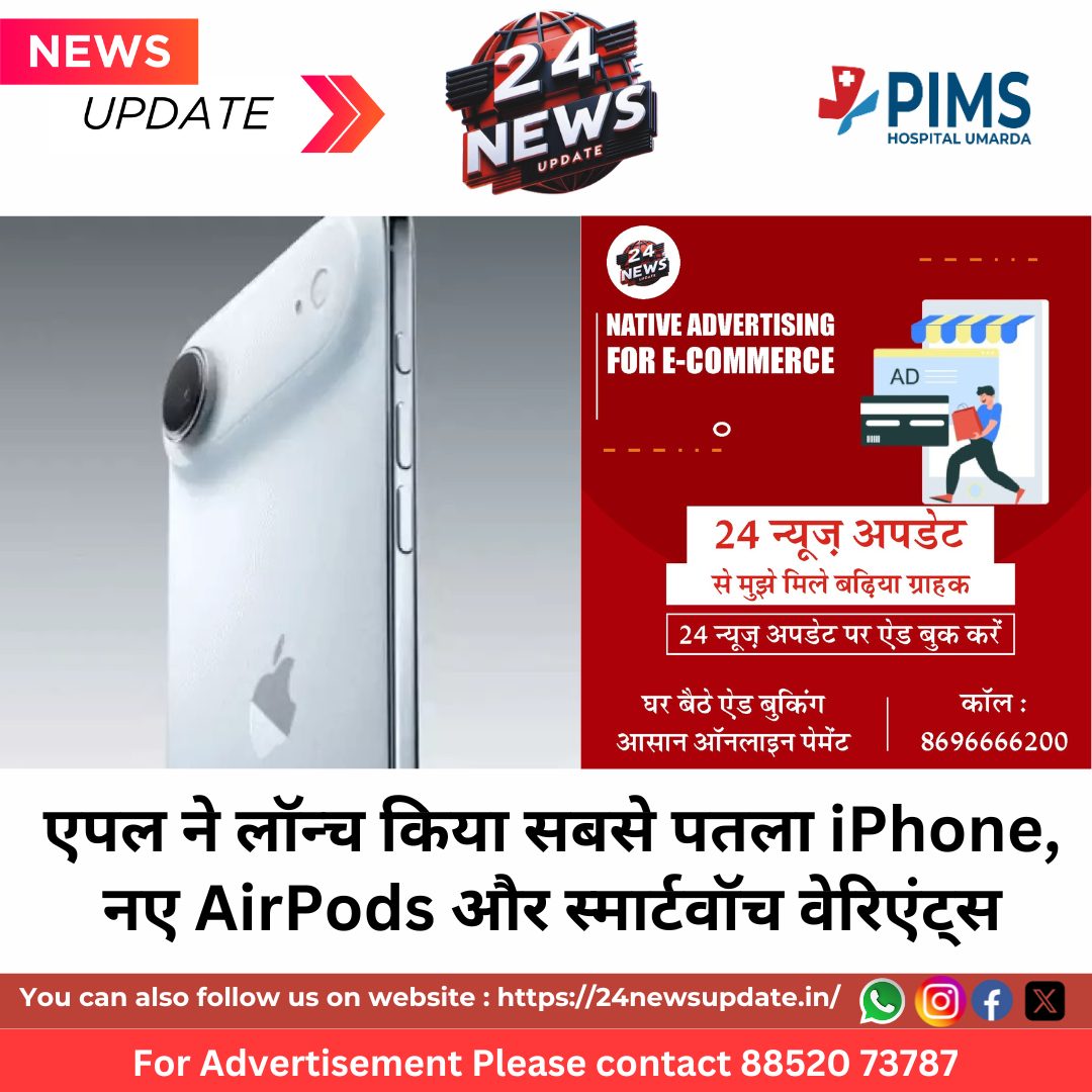 24 News Update नई दिल्ली। एपल ने अपने वार्षिक इवेंट ‘ऑफ ड्रॉपिंग 2025’ में टेक दुनिया को चौंका दिया। इस इवेंट में कंपनी ने कई नए प्रोडक्ट्स पेश किए, जिनमें सबसे खास है नया iPhone Air। यह अब तक का सबसे पतला iPhone है, जिसकी मोटाई मात्र 5.6 मिमी है। इसकी शुरुआती कीमत ₹1,20,000 रखी गई है।