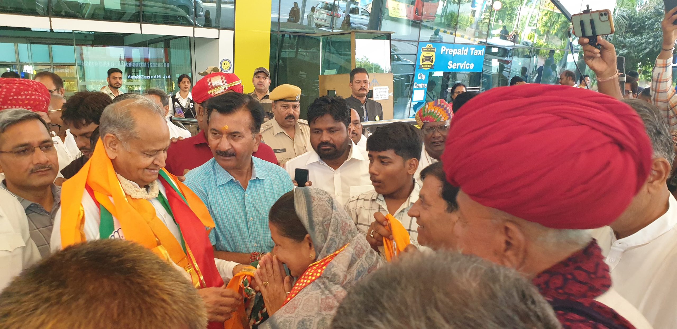 राजस्थान प्रदेश कांग्रेस कमेटी के महासचिव एवं प्रवक्ता पंकज कुमार शर्मा ने मेवाड़ी पगड़ी, तिरंगे सूत की माला एवं तिरंगा ऊपरना पहनाकर पारंपरिक अंदाज़ में उनका स्वागत किया। इस दौरान एयरपोर्ट परिसर में सोनिया गांधी जिंदाबाद राहुल गांधी जिंदाबाद , अशोक गहलोत जिंदाबाद” और “कांग्रेस पार्टी जिंदाबाद” जैसे नारे गूंज उठे।