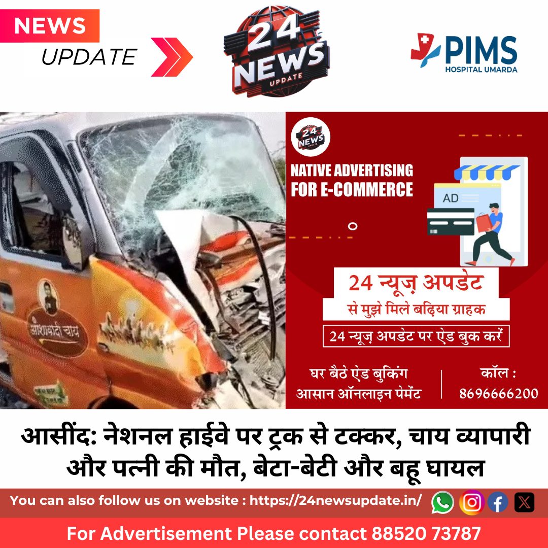 आसींद. आसींद थाना क्षेत्र में नेशनल हाईवे 158 पर गुरुवार सुबह हुए सड़क हादसे में एक चाय व्यापारी और उनकी पत्नी की मौत हो गई, जबकि उनके बेटे, बेटी और बहू गंभीर रूप से घायल हो गए।