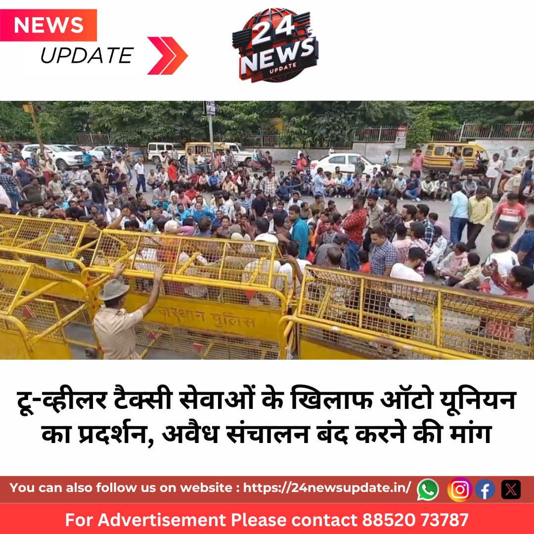24 News Update उदयपुर। शहर में निजी बाइकों पर पीली नंबर प्लेट लगाकर चल रही टू-व्हीलर टैक्सी सेवाओं के खिलाफ शुक्रवार को ऑटो यूनियन ने जिला कलेक्ट्रेट पर जोरदार प्रदर्शन किया। ऑटो चालकों ने इन सेवाओं को अवैध बताते हुए प्रशासन से तत्काल कार्रवाई की मांग की। प्रदर्शन का नेतृत्व कांग्रेस शहर जिलाध्यक्ष फतह सिंह राठौड़ ने किया। यूनियन पदाधिकारियों ने कलेक्टर को ज्ञापन सौंपते हुए ऐसी सेवाओं पर पूर्ण रोक लगाने की मांग की। यूनियन अध्यक्ष सईद सक्का ने कहा कि शहर की हर गली, मोहल्ले और चौराहे पर निजी बाइकों को पीली नंबर प्लेट लगाकर किराये पर चलाया जा रहा है, जो मोटर वाहन अधिनियम का सीधा उल्लंघन है। उन्होंने कहा कि टू-व्हीलर टैक्सी सेवाएं न केवल नियमों के विरुद्ध हैं, बल्कि ऑटो चालकों की आजीविका पर भी संकट खड़ा कर रही हैं। प्रदर्शनकारियों ने आरोप लगाया कि ऐप आधारित टू-व्हीलर सेवाएं सस्ती दरों पर यात्रियों को सुविधा दे रही हैं, जिससे ऑटो चालकों की आमदनी में भारी गिरावट आई है। अधिकांश ऑटो चालक बैंक से लोन लेकर वाहन खरीदते हैं और अब उन्हें किश्त चुकाने में भी परेशानी हो रही है।