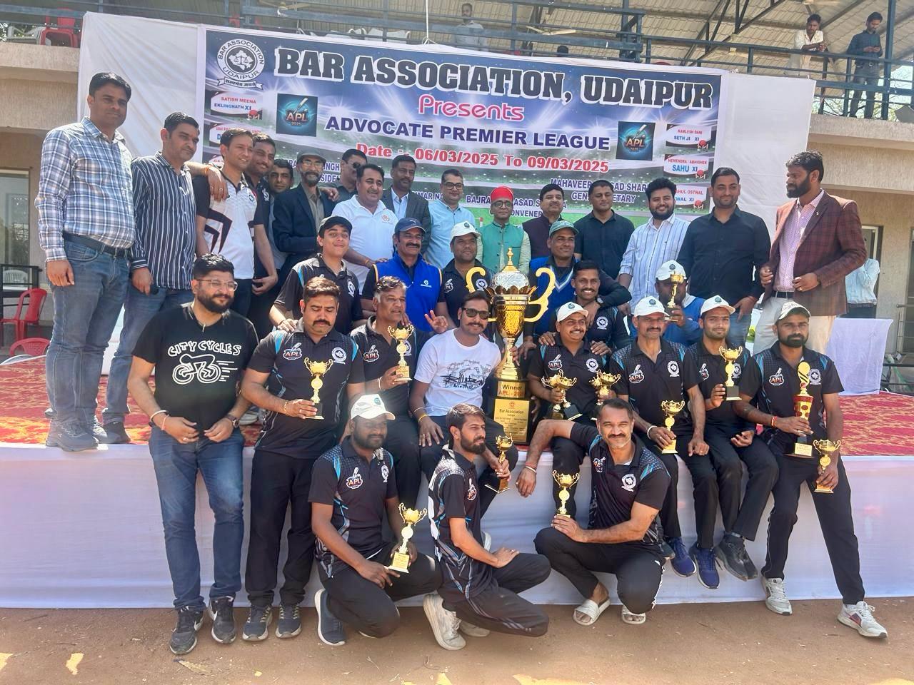 24 News update उदयपुर – बार एसोसिएशन उदयपुर द्वारा आयोजित चार दिवसीय एडवोकेट प्रीमियर लीग (एपीएल) 2025 का समापन 9 मार्च को हुआ, जिसमें सेठ जी 11 ने नारायण 11 को हराकर खिताब अपने नाम किया।