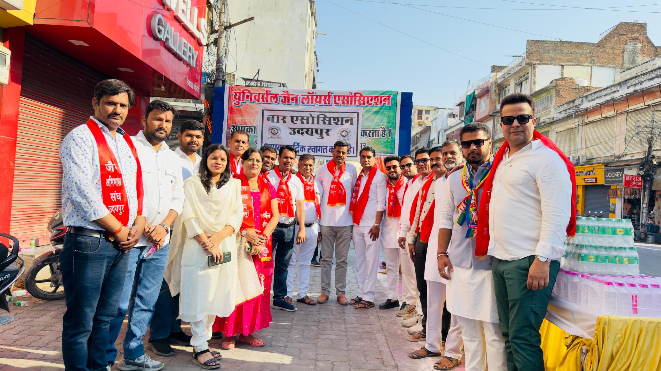 24 News update उदयपुर. बार एसोसिएशन उदयपुर के अध्यक्ष चंद्रभान सिंह शक्तावत ने बताया कि बार एसोसिएशन उदयपुर द्वारा भगवान महावीर जयंती के उपलक्ष में उदयपुर में भव्य शोभायात्रा निकाली गई उक्त शोभायात्रा का जगह-जगह पर नगर वासियों द्वारा स्वागत किया गया जिसके तहत बार एसोसिएशन उदयपुर द्वारा स्वागत द्वारा लगाते हुए यात्रा का स्वागत किया और उन्हें जलपान करवाया स्वागतकर्ता में बार एसोसिएशन उदयपुर के महासचिव महावीर प्रसाद शर्मा सचिव अभिषेक कोठारी वरिष्ठ अधिवक्ता प्रकाश चंद्र जैन, ऋषभ जैन,मनीष शर्मा, राकेश मोगरा, पंकज कोठारी,अरुण जैन, जितेंद्र जैन, हर्ष वर्धन जैन, भावेश जैन, भूपेन्द्र सिंह चुंडावत, महेंद्र ओझा,कल्पित जैन, आशीष जैन, पंकज जैन, प्रमोद जैन,राजेश शर्मा, जीवन्द्र जैन, लोकेश जैन, शत्रुघ्न सिंह, ललित जारोली, रानू जैन,पूनम पोरवाल के साथ कई अधिवक्ता उपस्थित रहे।