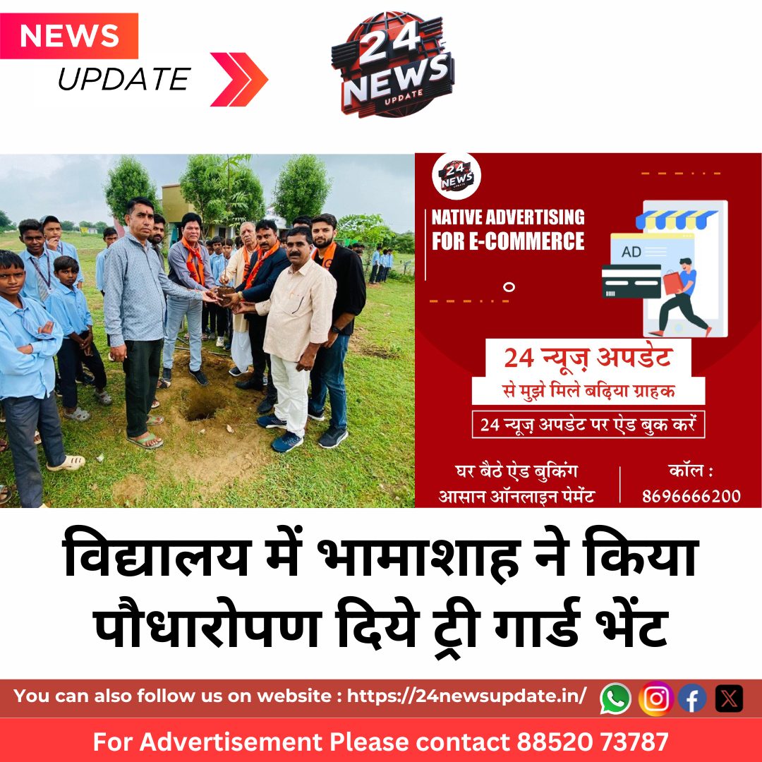 24 News Update सागवाड़ा (जयदीप जोशी)। निकट्वर्ती जोगपुर राजकीय उच्च माध्यमिक विद्यालय नवीन परिसर में उदयपुर के भामाशाह व विद्यालय स्टॉफ द्वारा पौधारोपण किया गया।विद्यालय के कार्यवाहक प्रधानाचार्य विजय अहारी के सानिध्य में पौधारोपण का कार्यक्रम हुआ भामाशाह उदयपुर निवासी भंवर लाल डांगी एवं विद्यालय स्टाफ के सहयोग से ट्री गार्ड और पौधे क्रय किए गए इस अवसर पर सागवाड़ा क्रय विक्रय सहकारी समिति के उपाध्यक्ष प्रताप बलाई भाजपा गोरेश्वर मंडल के उपाध्यक्ष अशोक पाटीदार चितरी मंडल उपाध्यक्ष पंकज पाटीदार पूर्व उपप्रधान गलियाकोट मानशंकर पाटीदार मितेश पाटीदार सहित विद्यालय स्टाफ व बालक बालिका उपस्थित थे। Share this: Share on X (Opens in new window) X Share on Facebook (Opens in new window) Facebook More Email a link to a friend (Opens in new window) Email Share on WhatsApp (Opens in new window) WhatsApp Like this:Like Loading... Related Discover more from 24 News Update Subscribe to get the latest posts sent to your email. Type your email… Subscribe Post navigation प्रज्ञेश्वर शिवभक्त मंडल ने की शिवोपासना किसानों को फसल खराबे में राहत व यूरिया डीएपी खाद उपलब्ध कराने की मांग को लेकर किसान संघ दिया ज्ञापन