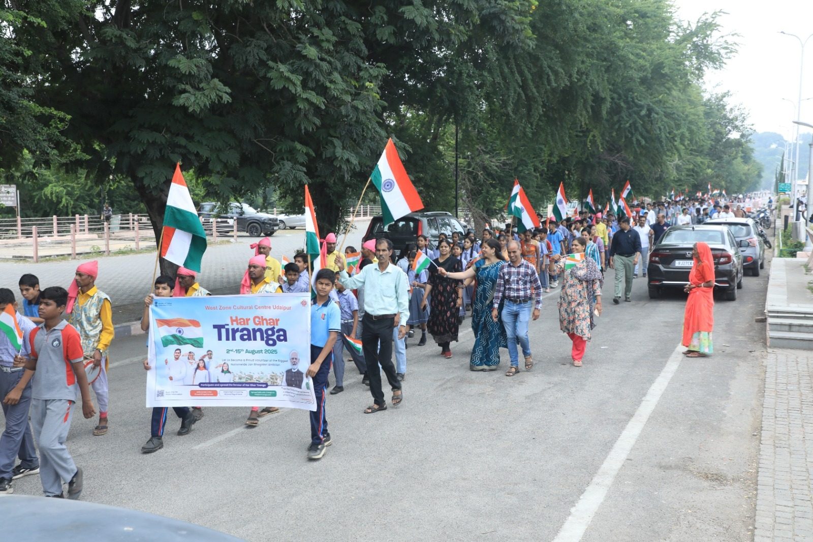 पश्चिम क्षेत्र सांस्कृतिक केन्द्र उदयपुर के निदेशक फुरकान खान ने बताया कि संस्कृति मंत्रालय भारत सरकार के निर्देशानुसार 2 से 15 अगस्त तक हर घर तिरंगा- 2025 अभियान के दौरान केन्द्र द्वारा फतहसागर पाल पर सोमवार की सुबह भव्य तिरंगा रैली निकाली गई। इस रैली में करीब 550 विद्यार्थियों एवं आमजन ने भाग लिया।