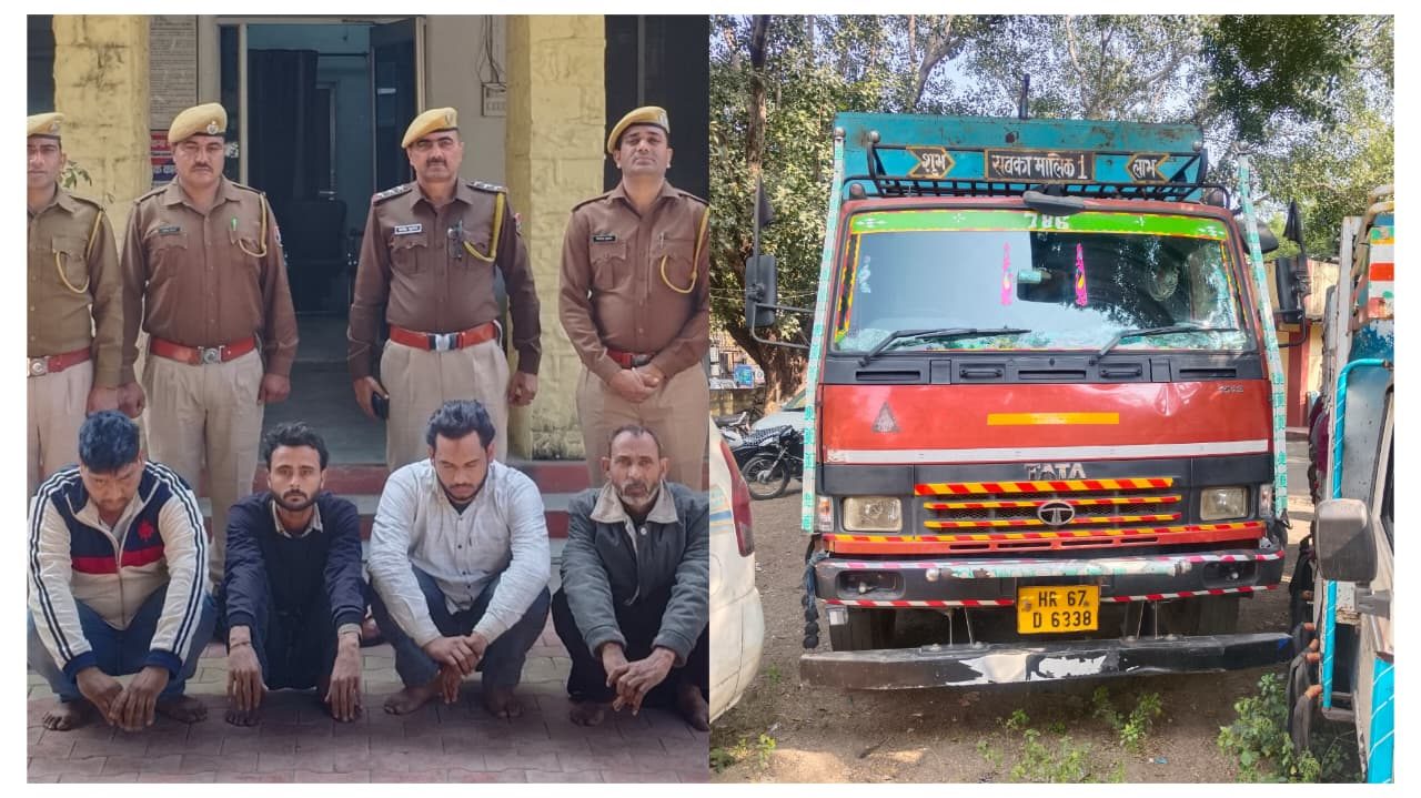 पुलिस टीम ने त्वरित कार्रवाई करते हुए ट्रक चालक मनव्वर उर्फ मोनू निवासी शामली उत्तरप्रदेश, ट्रक मालिक फिरोज निवासी पानीपत हरियाणा और ट्रांसपोर्ट स्वामी आश मोहम्मद निवासी सहारनपुर और उनके सहयोगी इदरिश निवासी शामली उत्तरप्रदेश को गिरफ्तार कर लिया।