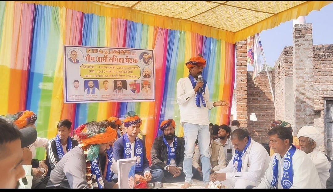 24 News Update मांडलगढ़ कोटड़ी में भीम आर्मी की समीक्षा बैठक संपन्न हुई, जिसमें संगठन की मजबूती, सामाजिक जागरूकता और आगामी चुनावों की रणनीति पर विस्तार से चर्चा की गई। बैठक को संबोधित करते हुए प्रदेश महासचिव सुरेश मेघवंशी ने कहा कि भीम आर्मी भाईचारा बनाओ यात्रा के माध्यम से समाज के हर वर्ग को जोड़ने का काम किया जाएगा। उन्होंने कार्यकर्ताओं से आह्वान किया कि आने वाले चुनावों में कमर कसकर मैदान में उतरना होगा और बाहुबल व पैसे के दम पर राजनीति करने वालों के सामने मजबूत फील्ड तैयार करनी पड़ेगी।मेघवंशी ने कहा कि बहुजन महापुरुषों के आंदोलनों और उनकी विचारधाराओं को घर-घर तक पहुंचाना भीम आर्मी की प्राथमिकता है।इस अवसर पर जिला अध्यक्ष पंकज डीडवानिया ने कहा कि वोट की ताकत सबसे बड़ी ताकत है, जो बाबा साहब डॉ. भीमराव अंबेडकर ने बहुजन समाज को दी है। अब समय आ गया है कि इस ताकत का सही और जागरूक उपयोग किया जाए।जिला उपाध्यक्ष दुर्गा लाल बैरवा ने कहा कि भीम आर्मी हमेशा शोषित, पीड़ित और अत्याचार के खिलाफ खड़ी रही है और आगे भी अन्याय के विरुद्ध संघर्ष जारी रहेगा।बैठक में भीम आर्मी जिला उपाध्यक्ष मनोहर लाल बैरवा एसपी विधायक प्रतियाशी बैरवा आजाद समाज पार्टी विधानसभा प्रभारी ओमप्रकाश रैगर जहाजपुर ब्लॉक अध्यक्ष रामलाल मेघवंशी मांडलगढ़ ब्लॉक अध्यक्ष ओमप्रकाश खटीक मांडलगढ़ ब्लॉक सचिव सुरेश चंद्र रैगर विकाश खटीक कोटड़ी ब्लॉक अध्यक्ष सावर लाल बैरवा उपध्यक्ष दिनेश कुमार मेघवंशी काछोला ब्लॉक अध्यक्ष जय किशन आदि सैकड़ों कार्य करताओ ने अपना विचार विचार विमर्श किया जय भीम जय संविधान जय जोहार जय लोकतंत्र आदि नारे से आसमान गज उठा। कार्यकर्ताओं ने संगठन को गांव-गांव तक मजबूत करने, युवाओं को जोड़ने और सामाजिक न्याय के लिए एकजुट होकर काम करने का संकल्प लिया।