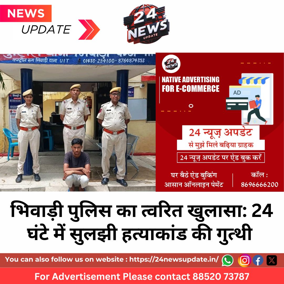 24 News Update जयपुर 7 जुलाई। भिवाड़ी फैज तृतीय पुलिस ने एक सनसनीखेज हत्या का महज 24 घंटे के भीतर खुलासा करते हुए मुख्य आरोपी को गिरफ्तार कर लिया है। पुलिस अधीक्षक ज्येष्ठा मैत्रेयी के दिशानिर्देश और अतिरिक्त पुलिस अधीक्षक अतुल शाहू के नेतृत्व में यह कार्रवाई की गई।