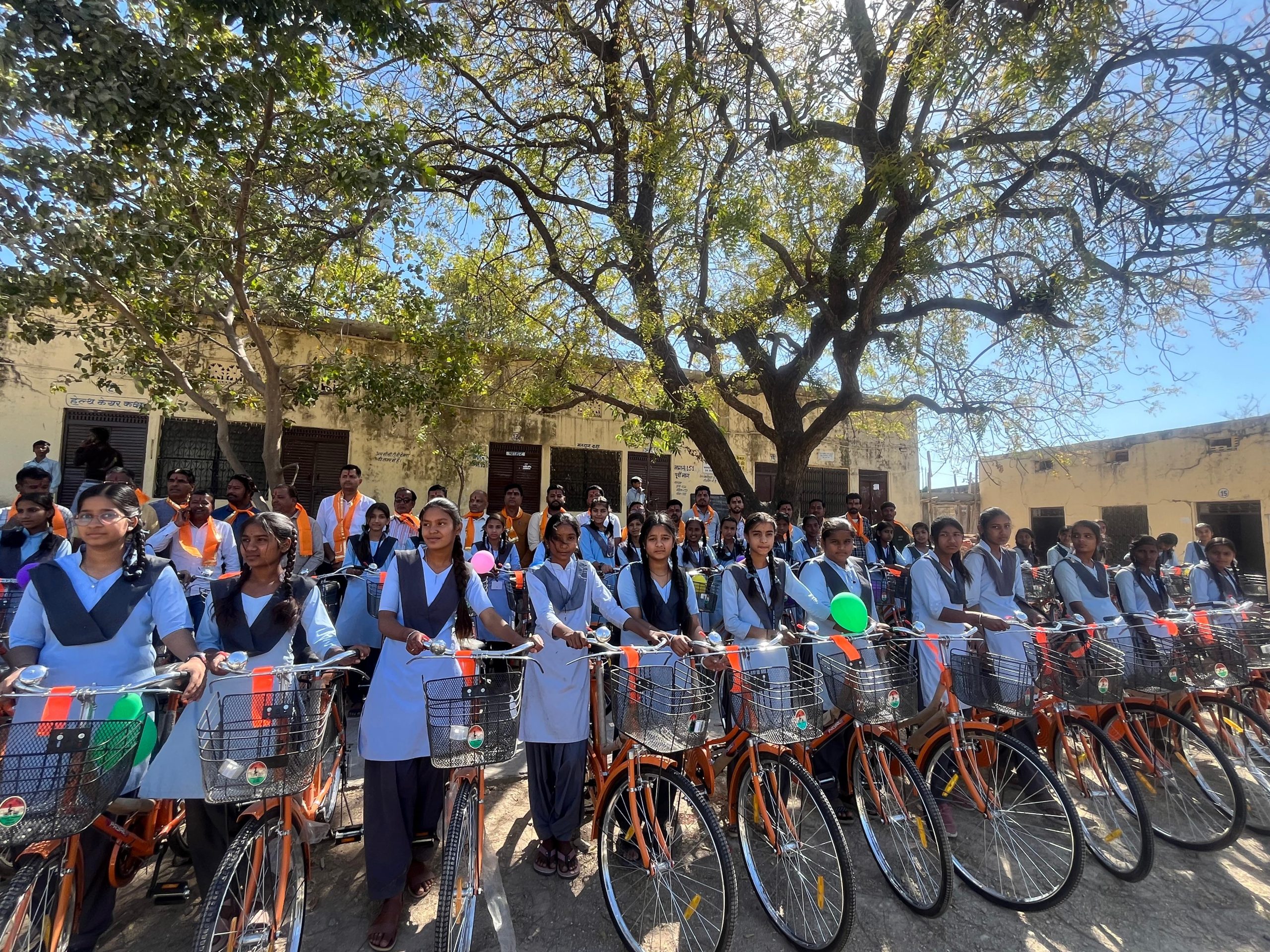 समारोह को संबोधित करते हुए निःशुल्क साइकिल वितरण योजना सहित विद्यार्थियों की कई लाभान्वित योजनाओं के बारे में बताया। अतिथियों ने बालिकाओं को साइकिल प्राप्त होने पर उनके अनुभव जानते हुए बालिकाओं से रूबरू बात की। साइकिल प्राप्त कर 50 ही बालिकाओं के चेहरे खिल गए। इन्होंने स्कूटी योजना निःशुल्क पाठ्य पुस्तक वितरण पोशाक वितरण एमडीएम कई प्रकार की छात्रवृतियां ,पालनहार योजना इंदिरा प्रियदर्शनी पुरस्कार गार्गी पुरस्कार प्रोत्साहन पुरस्कार लाडो़ योजना सहित राज्य सरकार की योजनाएं बताइए। समारोह में विधालय स्टाफॅ सहित पीईईओ क्षेत्र के शिक्षक व स्थानीय शाला के विद्यार्थी मौजूद रहे। समारोह की संपूर्ण व्यवस्था नवीं कक्षा की कक्षाध्यापिका ने की।