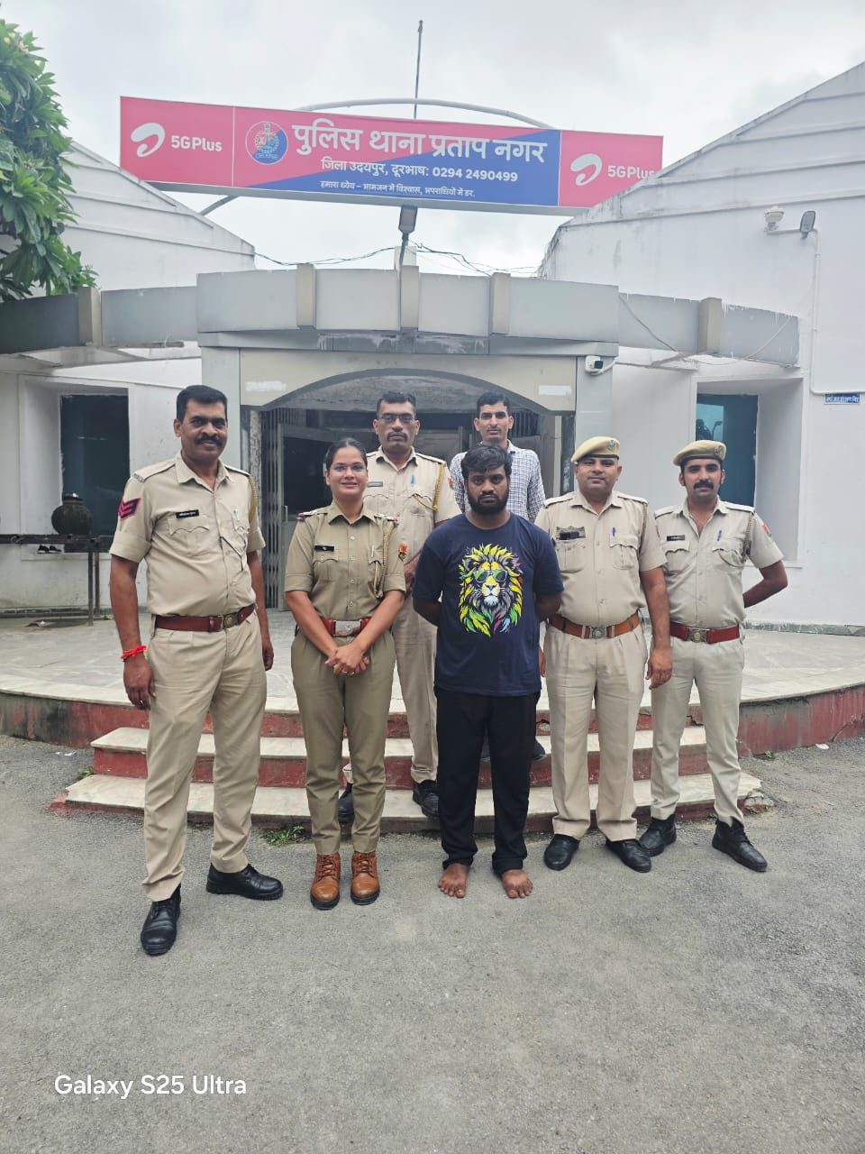 गिरफ्तार आरोपी: दीपक गारू (24), पिता दिलीप जी गारू, निवासी गांधीनगर, मल्लातलाई थाना अंबामाता, हाल निवासी लालमगरी थाना सविना, जिला उदयपुर।
