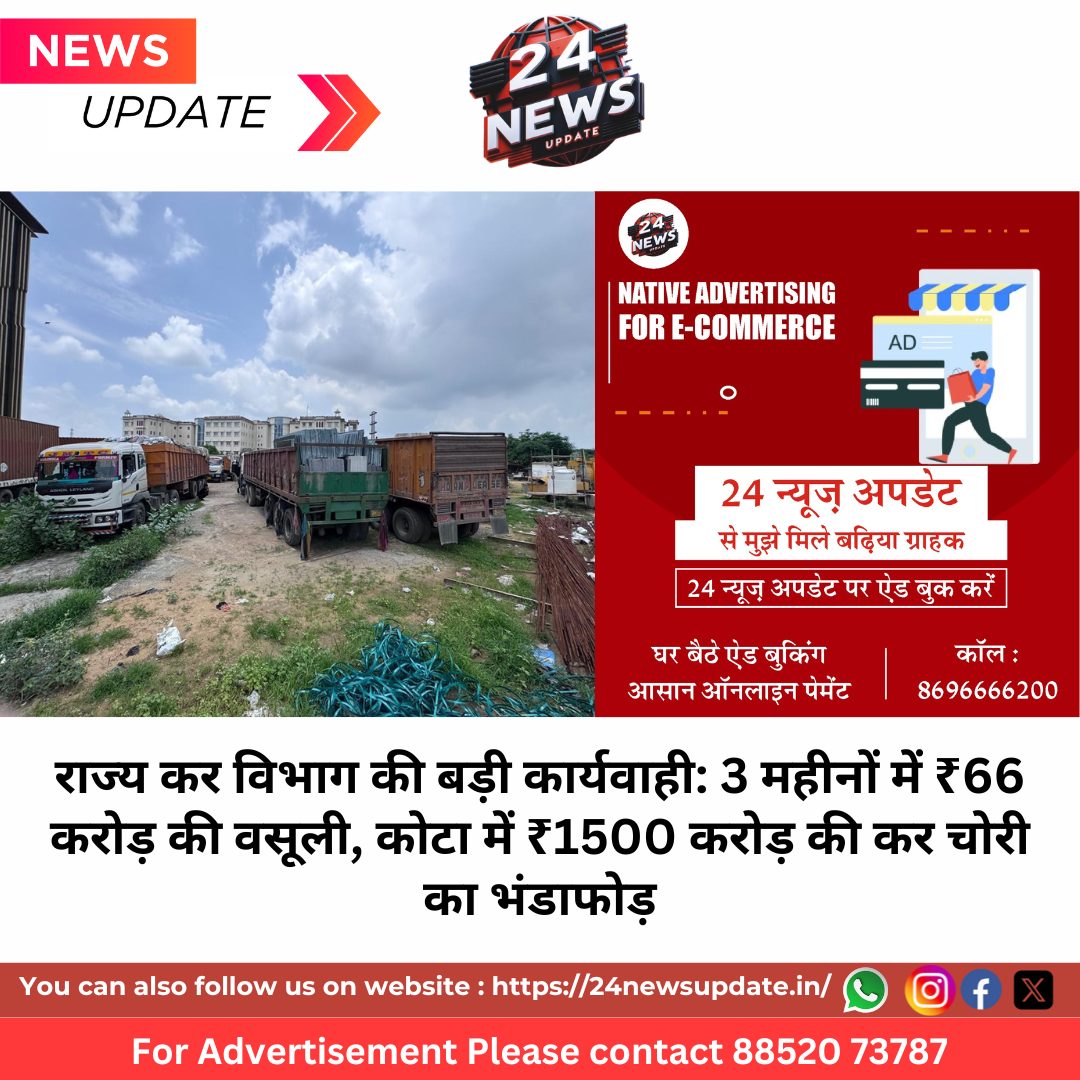 24 News Update जयपुर, मुख्यमंत्री श्री भजनलाल शर्मा की “जीरो टॉलरेंस” नीति के तहत राजस्थान में कर चोरी करने वालों पर शिकंजा कसता जा रहा है। राज्य कर विभाग की प्रवर्तन शाखा ने बीते तीन महीनों में व्यापक जांच और कार्रवाई करते हुए 66 करोड़ रुपये की कर वसूली की है। इन कार्रवाइयों से टैक्स चोरी में लिप्त व्यापारिक प्रतिष्ठानों, ट्रांसपोर्टरों और औद्योगिक इकाइयों में हड़कंप मचा हुआ है।तकनीक आधारित प्रवर्तन अभियानप्रवर्तन कार्रवाई का नेतृत्व कर रहे मुख्य आयुक्त वाणिज्यिक कर श्री कुमार पाल गौतम ने बताया कि विभाग ने AI (आर्टिफिशियल इंटेलिजेंस) और RFID (रेडियो फ्रीक्वेंसी आइडेंटिफिकेशन) तकनीकों का उपयोग करते हुए राज्यभर में सघन परिवहन जांच अभियान चलाया। इस दौरान 24 वाहन जब्त किए गए, जिनमें सुपारी, आयरन स्क्रैप, ग्रेनाइट और मार्बल जैसे सामान बिना वैध दस्तावेजों के ले जाए जा रहे थे। इन मामलों में एक करोड़ रुपये का जुर्माना वसूल किया जा चुका है, जबकि 4 करोड़ रुपये की राशि अभी वसूली के प्रक्रियाधीन है। जिन वाहन और माल मालिकों ने अब तक अपना दावा नहीं किया, उनके खिलाफ नीलामी की तैयारी की जा रही है।सर्वे और तकनीकी साक्ष्य से बड़ी कर वसूलीराज्यभर में व्यापारिक प्रतिष्ठानों पर की गई सर्वे कार्रवाइयों के माध्यम से विभाग को 50 करोड़ रुपये का अतिरिक्त राजस्व मिला है। सभी कार्रवाइयाँ तकनीकी विश्लेषण और डिजिटल निगरानी के आधार पर की गईं, जिससे सटीक और सशक्त प्रमाण जुटाए गए।कोटा में सबसे बड़ी कार्रवाई: ₹1500 करोड़ की कर चोरी उजागरपिछले माह कोटा में राज्य कर विभाग ने एक पान मसाला निर्माण इकाई पर बड़ी कार्रवाई करते हुए 1,500 करोड़ रुपये की कर चोरी का भंडाफोड़ किया। कार्रवाई के दौरान फैक्ट्री और एक गुप्त गोदाम से बिना दस्तावेज वाले रॉ मटेरियल और भारी मात्रा में बिना बिल का स्टॉक जब्त किया गया। इस प्रकरण में दो व्यक्तियों को गिरफ्तार किया गया, जिनकी जमानत जिला सत्र न्यायालय ने खारिज कर दी है। विभाग ने तत्काल प्रभाव से 15 करोड़ रुपये की नकद राशि जमा करवाई है — जो अब तक राज्य की किसी भी प्रवर्तन कार्रवाई में एक बार में जमा की गई सबसे बड़ी राशि मानी जा रही है। राज्य कर विभाग के पास इस केस में 1,500 करोड़ से अधिक की संभावित कर देयता से संबंधित साक्ष्य मौजूद हैं। विभाग द्वारा शीघ्र ही औपचारिक कर निर्धारण कर वसूली प्रक्रिया प्रारंभ की जाएगी।राजस्व में उल्लेखनीय वृद्धि, आगे और सख्तीमुख्य आयुक्त श्री गौतम ने स्पष्ट किया कि राज्य सरकार की नीति के अनुरूप आगे भी कर चोरी के मामलों में कड़ाई से निपटा जाएगा, और प्रवर्तन कार्यवाहियाँ और तेज की जाएंगी। इन अभियानों से राज्य के राजस्व संग्रहण में महत्त्वपूर्ण वृद्धि दर्ज की गई है, 