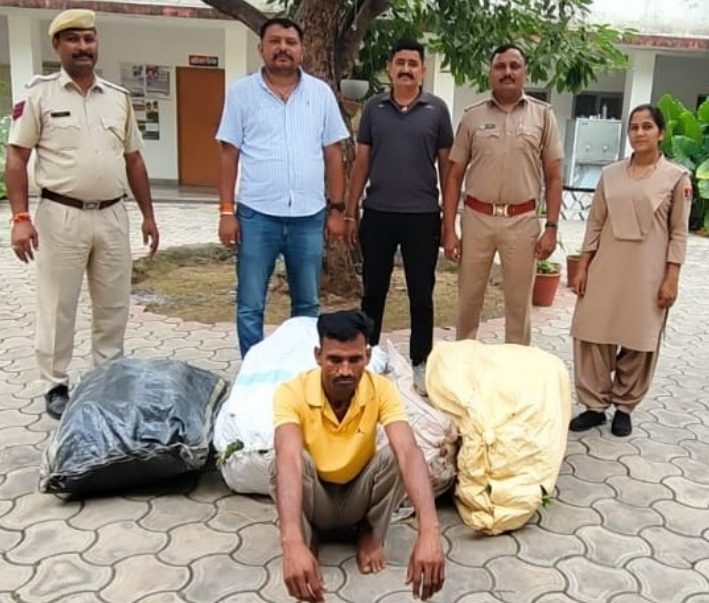 24 News Update उदयपुर। जिला पुलिस अधीक्षक योगेश गोयल के निर्देश पर अवैध मादक पदार्थों के खिलाफ चल रहे विशेष अभियान के तहत थाना टीडी पुलिस ने खेत में अवैध गांजे की खेती का भंडाफोड़ कर एक आरोपी को गिरफ्तार किया है। अतिरिक्त पुलिस अधीक्षक (मुख्यालय) गोपाल स्वरूप मेवाड़ा और वृताधिकारी (गिर्वा) सूर्यवीर सिंह के सुपरविजन में, थानाधिकारी देवेन्द्र सिंह के नेतृत्व में पुलिस टीम ने आसूचना के आधार पर कार्रवाई करते हुए पन्ना पुत्र माधु, निवासी पड़ूणा फला भदावत, थाना टीडी, जिला उदयपुर को उसके खेत में गांजा उगाने के आरोप में दबोच लिया। पुलिस ने मौके से कट्टों सहित 42.300 किलो गांजे की फसल जब्त की। आरोपी के खिलाफ प्रकरण संख्या 104/2025 धारा 8/20 एनडीपीएस एक्ट में मामला दर्ज कर अग्रिम अनुसंधान जारी है।