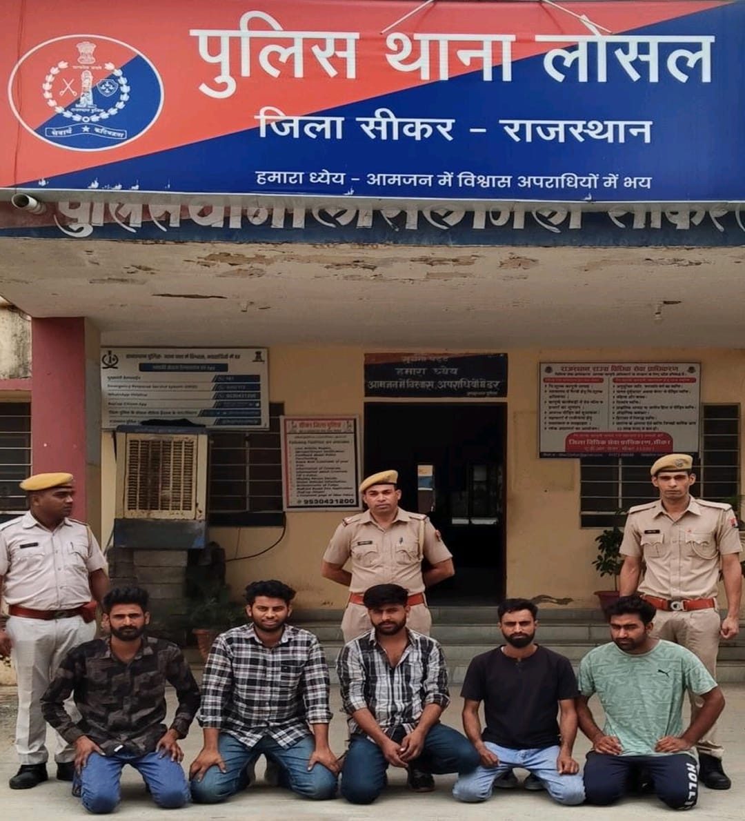 लोसल थानाधिकारी सरदार मल के नेतृत्व में गठित टीम ने आसूचना संकलन और मुखबिर खास की मदद से इन आरोपियों का पता लगाया। गिरफ्तार किए गए पांचों आरोपी प्रदीप सिंह पुत्र नादान सिंह (22), शक्ति सिंह पुत्र गिरधारी सिंह (23), राजवीर सिंह पुत्र शिवराज सिंह (22) निवासी खांडी थाना लोसल और दिलीप सिंह पुत्र रघुवीर सिंह (27) व रामावतार पुत्र ओमप्रकाश (22) निवासी भीराणा थाना लोसल हैं और घटना को अंजाम देने के बाद से ही मोबाइल बंद कर छिपे हुए थे।