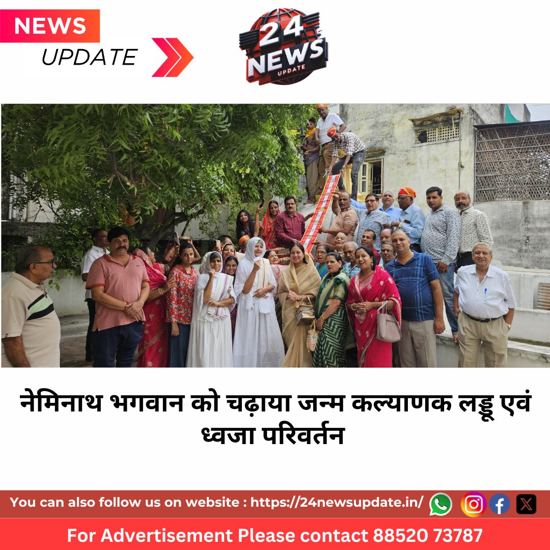 आयड़ तीर्थ व देहली गेट नेमिनाथ मंदिर में चढ़ाई ध्वजा व लड्डू– सवा पांच किलो का चढ़ाया जन्म कल्याणक लड्डू – गाजे-बाजे के साथ निकली विशाल शोभायात्रा 24 News Update उदयपुर । श्री जैन श्वेताम्बर महासभा के तत्वावधान में तपागच्छ की उद्गम स्थली आयड़ तीर्थ एवं देहली गेट स्थित नेमिनाथ जैन मंदिर पर मूलनायक नेमिनाथ भगवान का जन्म कल्याणक महोत्सवध्व धूमधाम से मनाया गया। जिसमें आयड़ तीर्थ पर बिराजित कला पूर्ण सूरी समुदाय की साध्वी जयदर्शिता श्रीजी, जिनरसा श्रीजी, जिनदर्शिता श्रीजी व जिनमुद्रा श्रीजी महाराज, सूरजपोल दादावाड़ी मंदिर की साध्वी विपुल प्रभा जी, थोब की बाड़ी में बिराजित उपेन्द्रयशा श्रीजी आदि ठाणा के सानिध्य में मंगलवार को नेमिनाथ भगवान का जन्मकल्याणक महोत्सव एवं मंदिर पर ध्वजा परिवर्तन सहित विविध आयोजन हुए । महासभा के महामंत्री कुलदीप नाहर ने बताया कि पाश्र्व वल्लभ सेवा ममण्ड की बहिनों द्वारा सत्राह भेदी पूजा पढ़ाई गई। गाजे-बाजे की स्वर लेहरियां बिखेरती हुई विशाल शोभायात्रा देहली गेट स्थित नेमिनाथ जैन मंदिर पहुंची जहां चांदमल जयश्री बागरेचा व हिम्मत सिंह निर्मल मुर्डिया द्वारा मूलनायक नेमिनाथ भगवान को सवा पांच किलों का जन्मकल्याणक लड्डू व ध्वजा परिवर्तन चढ़ाया गई। आरती मंगल दीपक संघवी अर्जुनलाल ट्रस्ट के अध्यक्ष अशोक जैन ने की। इस अवसर पर कुलदीप नाहर, भोपाल सिंह नाहर, चन्द्र सिंह बोल्या, मनोहर सिंह नलवाया, रवि देरासरिया, फतह सिंह नलवाया, रणवीर मादरेचा,सुभाष मेहता, सुरेन्द्र नलवाया, चतर सिंह पामेच, सतीश कच्छारा, प्रकाश नागोरी, अशोक जैन, राजेन्द्र जवेरिया, दिनेश बापना, अभय नलवाया, कैलाश मुर्डिया, गोवर्धन सिंह बोल्या, दिनेश भण्डारी, रविन्द्र बापना, चिमनलाल गांधी, प्रद्योत महात्मा, रमेश सिरोया, कुलदीप मेहता आदि मौजूद रहे। Share this: Share on X (Opens in new window) X Share on Facebook (Opens in new window) Facebook More Email a link to a friend (Opens in new window) Email Share on WhatsApp (Opens in new window) WhatsApp Like this:Like Loading... Related Discover more from 24 News Update Subscribe to get the latest posts sent to your email. Type your email… Subscribe Post navigation मुकुट सप्तमी महामहोत्सव 31 जुलाई को, लड्डू सजाओं प्रतियोगिता का होगा आयोजन मायावी व्यक्ति का जीवन मुख में राम और बगल में छुरी जैसा होता है : जैनाचार्य रत्नसेन सूरीश्वर महाराज