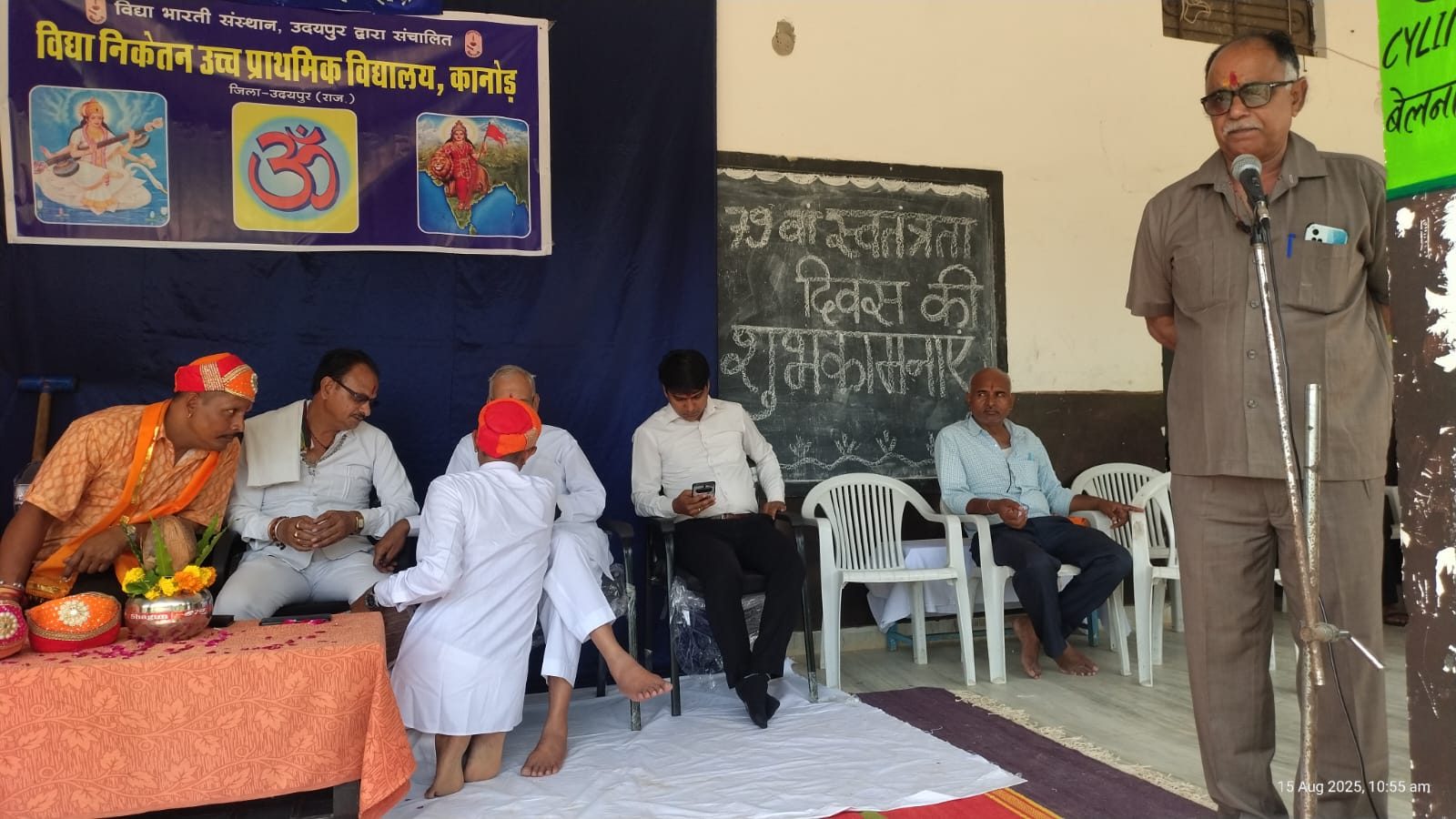 24 News Update कानोड | विद्या भारती संस्थान उदयपुर द्वारा संचालित विद्या निकेतन उ.प्रा.विद्यालय में 79 वां स्वतंत्रता दिवस हर्षोल्लास के साथ मनाया गया । कार्यक्रम की अध्यक्षता समाज सेवी पुष्कर जोशी थे तो मुख्य अतिथि सेवानिवृत्त नायब तहसीलदार चन्द्र प्रकाश व्यास रहे । परशुराम सोनी ,कन्हैयालाल नागोरी ,चेतन मेनारिया ,संस्थान अध्यक्ष महेन्द्र जोशी ,सचिव बंशी लाल तेली ,विद्या देवी ,इन्दिरा सोनी ,नंद लाल मीणा ,अम्बालाल लक्ष्यकार, चन्द्र शेखर ,भगवती लाल तेली , शंभू लाल मेघवाल सहित अनेक गणमान्य सज्जनों से मंच सुसज्जित रहा । विद्यालय के भैया बहिनों ने देश भक्ति गीतों पर जमकर आनन्द पूर्वक नृत्य प्रस्तुत किए तो जन्माष्टमी पर्व होने से नन्हे भैया बहिन कान्हा जी की सुन्दर झांकी बने । प्रधानाध्यापक राजेन्द्र व्यास ने ध्वजोत्तोलन किया ,संस्थान सचिव बंशी लाल तेली ने अतिथियों का स्वागत व अध्यक्ष महेन्द्र जोशी ने आभार व्यक्त किया । संचालन आचार्या गगन व्यास ने किया ।