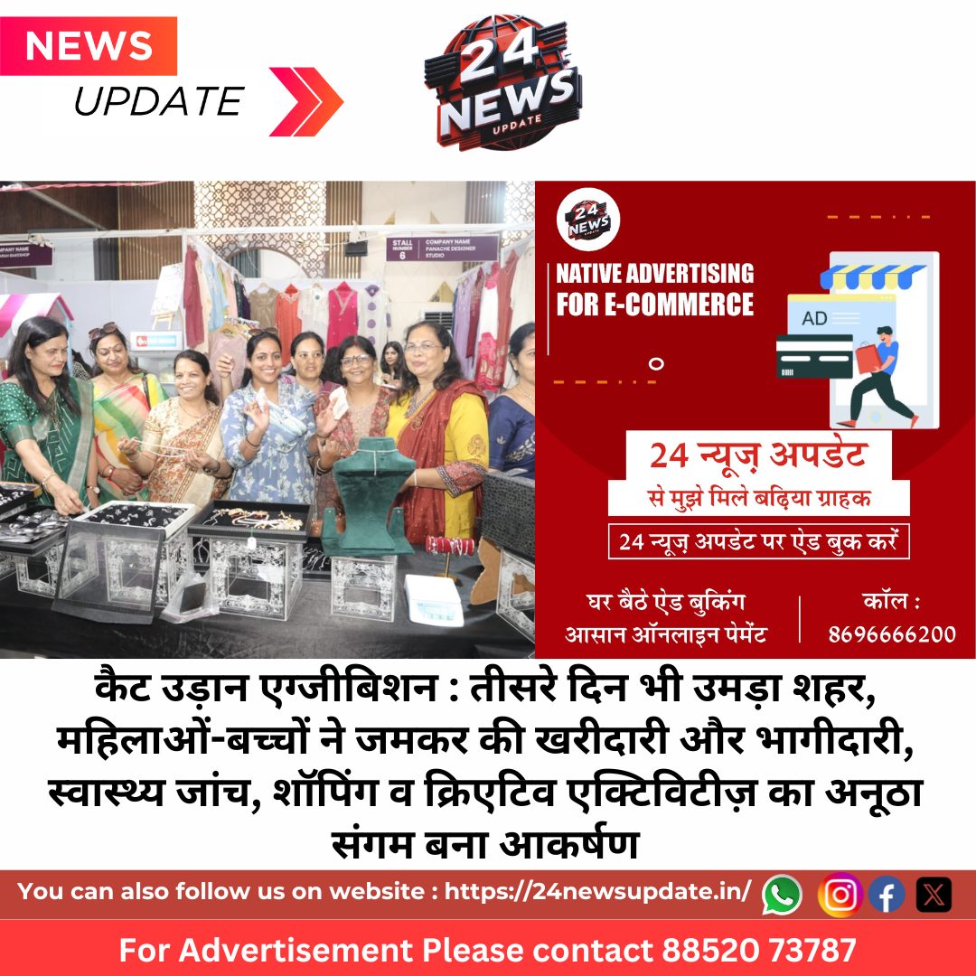 24 News Update उदयपुर, 11 जुलाई। कैट वूमेन विंग, उदयपुर द्वारा आयोजित तीन दिवसीय ‘गेट उड़ान एग्जीबिशन’ का तीसरा व अंतिम दिन बेहद उत्साहपूर्ण, रचनात्मक और स्वास्थ्य जागरूकता से भरपूर रहा। शुक्रवार को आयोजन स्थल पर शहरभर से महिलाओं और बच्चों की भारी भीड़ उमड़ी, जिसने न केवल जमकर शॉपिंग की, बल्कि स्वास्थ्य वार्ता, नि:शुल्क चेकअप और क्राफ्ट एक्टिविटीज़ में भी उत्साहपूर्वक भाग लिया। संस्था की अध्यक्ष विजयलक्ष्मी गलूंडिया और सचिव डॉ. सोनू जैन ने बताया कि पूर्व जिला प्रमुख मधु मेहता कार्यक्रम की मुख्य अतिथि रहीं। शॉपिंग स्टॉल्स पर महिलाओं ने घरेलू उपयोग की चीजों, फैशन उत्पादों, हस्तशिल्प सामग्री और आर्ट आइटम्स की जमकर खरीदारी की। सभी स्टॉल्स पर विशेष डिस्काउंट ऑफर भी आकर्षण का केंद्र रहे।