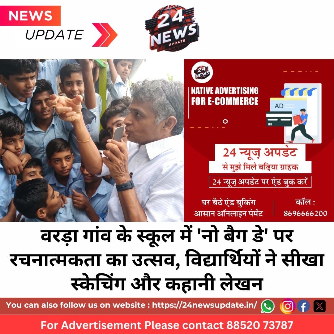 24 News Update उदयपुर, शहर के समीप स्थित राजकीय उच्च माध्यमिक विद्यालय, वरड़ा में शनिवार को ‘नो बैग डे’ के उपलक्ष्य में एक प्रेरणादायक और रचनात्मक कार्यक्रम का आयोजन किया गया। इस दिन विद्यार्थियों ने किताबों और बस्तों से अलग हटकर सृजनात्मक गतिविधियों में भाग लिया, जिससे उनकी छिपी प्रतिभाएं सामने आ सकें।