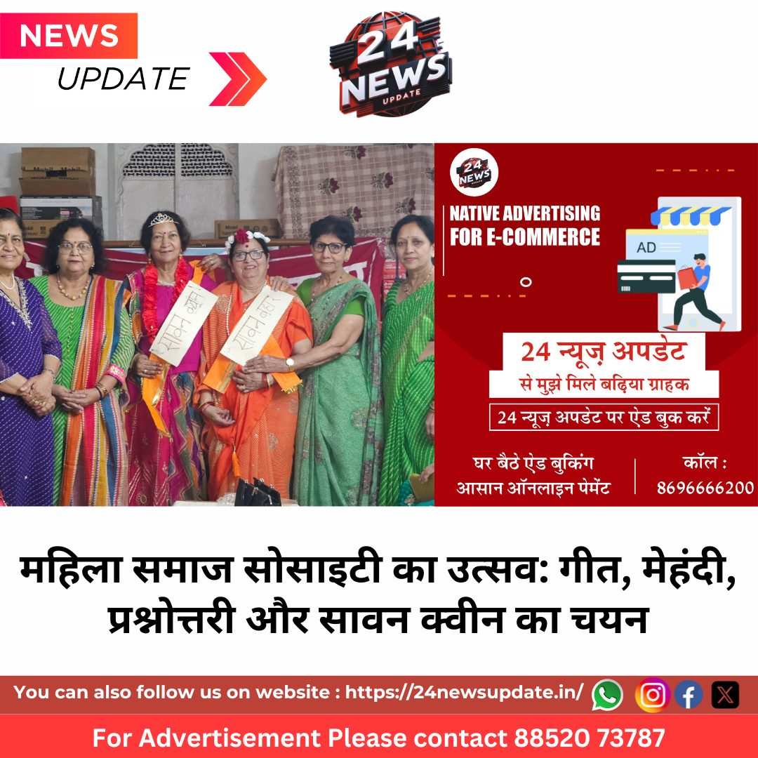 24 News Update उदयपुर। महिला समाज सोसाइटी द्वारा सावन का उल्लास ‘मैत्री भाव जगत में मेरा’थीम के साथ पूरे उत्साह और सौहार्द से मनाया गया।