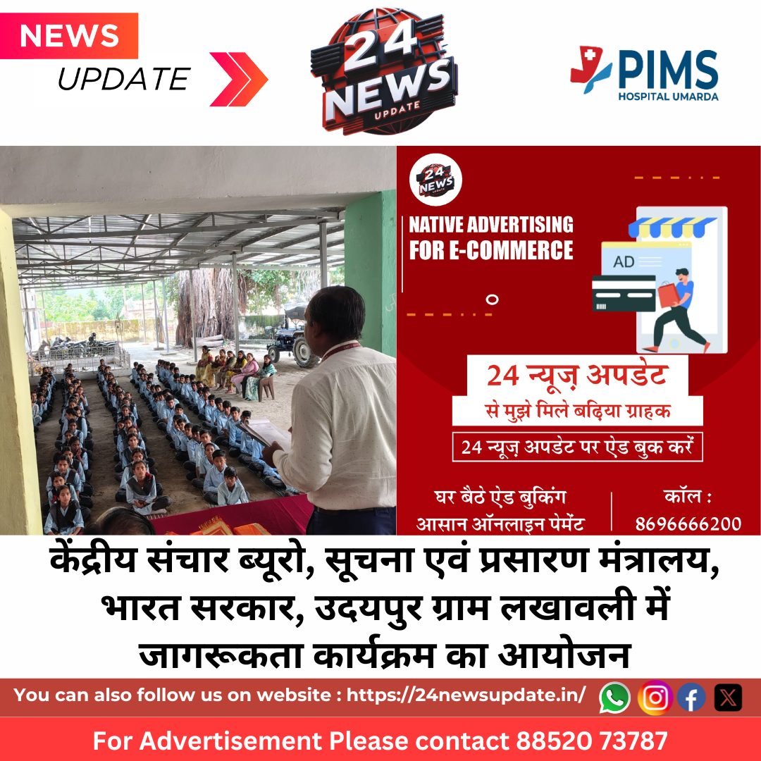 24 News Update उदयपुर | सूचना एवं प्रसारण मंत्रालय के केंद्रीय संचार ब्यूरो के क्षेत्रीय कार्यालय उदयपुर की ओर से आज ग्राम लखावली में राजकीय उच्च माध्यमिक विद्यालय परिसर में केंद्र सरकार की विभिन्न जनकल्याणकारी योजनाओं तथा हमारा संविधान हमारा स्वाभिमान विषय पर जागरूकता कार्यक्रम एवं मिनी प्रदर्शनी का आयोजन किया गया।