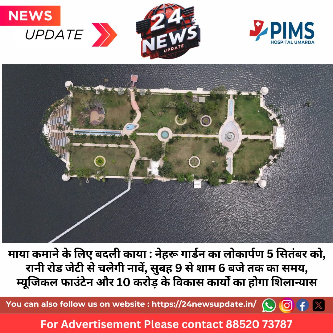 24 News Update उदयपुर। उदयपुर की शान फतहसागर झील का दिल कहे जाने वाले नेहरू उद्यान का जीर्णोद्धार अब पूरा हो चुका है। वर्षों से लोकार्पण का इंतजार कर रहे शहरवासी और पर्यटक अब जल्द ही इस खूबसूरत द्वीप उद्यान की सैर कर सकेंगे। 5 सितंबर 2025 को उद्यान का लोकार्पण प्रस्तावित है। इसी दिन लगभग 10 करोड़ रुपये की लागत से किए जाने वाले सौंदर्यीकरण कार्यों का शिलान्यास भी होगा, जिनमें म्यूजिकल फाउंटेन और आकर्षक फसाड लाइटिंग जैसी आधुनिक सुविधाएं शामिल हैं।