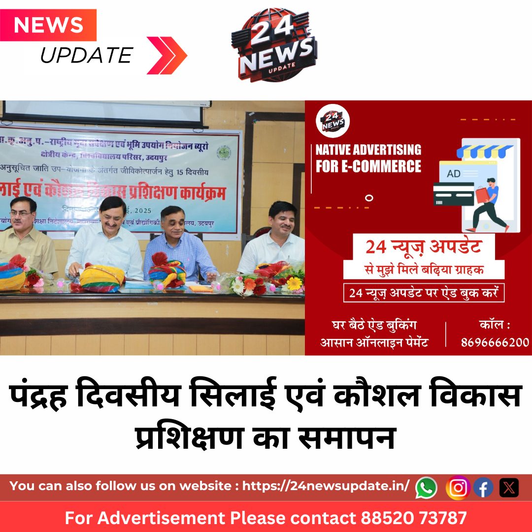 पंद्रह दिवसीय इस प्रशिक्षण में महिलाओं ने रूमाल, कुर्ती, पेटीकोट, घाघरा, छोटे बच्चों का झबला आदि की कटिंग व सिलाई सीखी। मास्टर ट्रेनर डॉ. छवि, डॉ. लतिका व्यास ने बैग सिलाई व सुंदर कशीदाकारी भी सिखाई। इस मौके पर प्रशिक्षणार्थी राधा मेघवाल, शारदा खटीक, कोमल मेघवाल आदि ने अनुभव भी सझा किए। कार्यक्रम में छात्र कल्याण अधिकारी डॉ. मनोज कुमार महला, रश्मि दूबे, डॉ. आदर्श शर्मा व एनबीएसएस थे अधिकारियों ने भी विचार रखे। संचालन डॉ. लतिका व्यास ने किया।