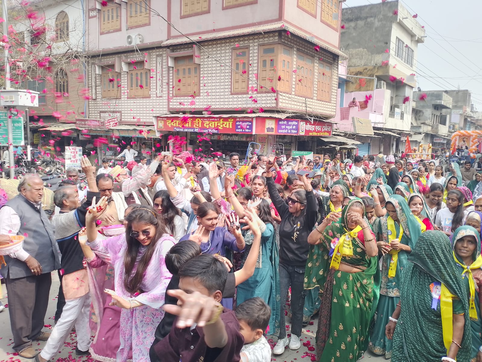 रविवार को दोपहर 12.30 बजे नगर के प्रमुख मार्गों से होती हुई यह शोभायात्रा जब चित्तौड़ी दरवाजा स्थित पुराने हॉस्पिटल के समीप पहुँची,तो वहां उपस्थित कांग्रेसजनों द्वारा शोभायात्रा का भव्य,आत्मीय एवं भावभीना स्वागत व अभिनंदन किया गया।