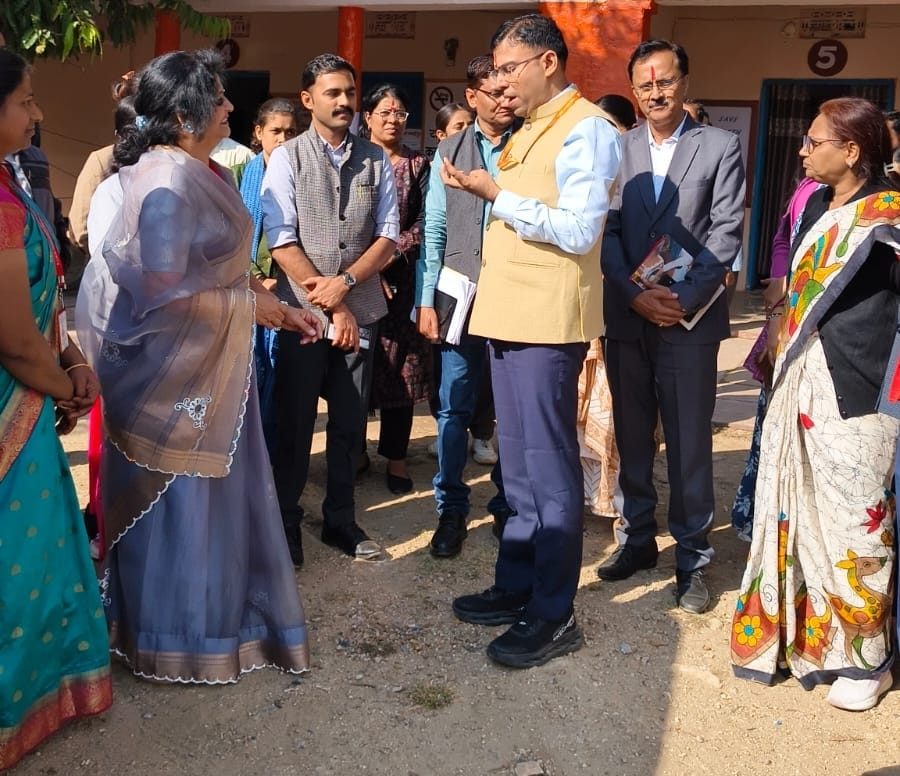 24 News Update भीलवाडा. भीलवाडा ज़िले के सवाईपुर स्कूल में गृह मंत्रालय से आए वरिष्ठ आईएएस अधिकारी ने किया दौरा स्कूल की कार्य प्रणाली स्टाफ और प्रिंसिपल डॉ.ठाकुर के कार्य व नवाचार की सराहना की भीलवाड़ा। शिक्षा से वंचित रह रहे बच्चों और विद्यार्थियों को विद्यालय से जोड़े एवं कमजोर विद्यार्थी पर विशेष ध्यान देकर उन्हें आगे लाएं। यह कहना था गृह मंत्रालय भारत सरकार से आए वरिष्ठ आईएएस अधिकारी भगवती प्रसाद कलाल का।देशभर में करीब 500 पिछड़े ब्लॉक हैं उन ब्लॉक में भीलवाड़ा जिले से कोटडी ब्लॉक भी शामिल है। इस कोटडी ब्लॉक के प्रभारी गृह मंत्रालय के वरिष्ठ आईएएस अधिकारी भगवती प्रसाद कलाल आज एक दिवसीय दौरे पर भीलवाड़ा आए थे। उन्होंने कोटडी मुख्यालय पर स्थित मॉडल स्कूल में ब्लॉक और जिला स्तर के सभी विभाग के अधिकारियों की बैठक ली और बैठक में आशान्वित योजना के संबंध में अब तक की प्रगति के बारे में जानकारी लेते हुए समीक्षा की एवं आवश्यक दिशा निर्देश भी दिए। इस बैठक के पश्चात उन्होंने कोटडी ब्लॉक में ही स्थित राजकीय उच्च माध्यमिक विद्यालय सवाईपुर का निरीक्षण किया। निरीक्षण के दौरान उन्होंने विद्यालय की कार्य प्रणाली विद्यालय स्टाफ और विद्यालय की प्रिंसिपल डॉ.प्रतिष्ठा ठाकुर के कार्य की सराहना की एवं कहा की जो विद्यार्थी स्कूल आने से वंचित रह रहे हैं या स्कूल छोड़ गए हैं उन्हें वापस शिक्षा से जोड़ने के लिए प्रयास करने चाहिए तथा विद्यालय में अध्यनरत कमजोर विद्यार्थियों पर विशेष ध्यान देकर उन्हें आगे लाना चाहिए तथा विद्यार्थियों के अध्ययन सहित अन्य गतिविधियों के बारे में उनके अभिभावको को भी इस संबंध में जानकारी देते हुए उनसे संवाद कायम रखना चाहिए। कलाल ने कहा कि विद्यालय केवल पढ़ाई का केंद्र ही नहीं यह विकास की पाठशाला भी है। वरिष्ठ आईएएस भगवती प्रसाद कलाल के साथ निरीक्षण के दौरान जिला परिषद के मुख्य कार्यकारी अधिकारी चंद्रभान सिंह भाटी, मुख्य जिला शिक्षा अधिकारी अरूणा गारू, उपखंड अधिकारी कोटडी तानिया रिणवा, मुख्य ब्लॉक शिक्षा अधिकारी अशोक पारीक, विकास अधिकारी कोटडी प्रेमचंद मीणा, जिला योजना अधिकारी, सांख्यिकी अधिकारी सोनम कोठारी सहित कई अधिकारी मौजूद थे। इन सभी अधिकारियों ने विद्यालय में संचालित गणित की प्रयोगशाला, व्यावसायिक शिक्षा और नक्षत्र गार्डन को देखा तथा विद्यालय में साफ सफाई और विद्यालय संचालन की सराहना करते हुए विद्यालय स्टाफ और विद्यालय की प्रिंसिपल डॉ. प्रतिष्ठा ठाकुर की कार्यप्रणाली एवं नवाचार की सराहना की। विद्यालय आगमन पर इन सभी अधिकारियों का विद्यालय के प्रिंसिपल डॉ. प्रतिष्ठा ठाकुर और विद्यालय स्टाफ ने स्वागत किया एवं साफा और उपारणा पहनाया। इस अवसर 