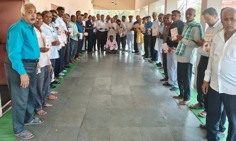 सागवाड़ा (जयदीप जोशी)। नगर के निकटवर्ती खडगदा गांव में मोरन नदी के पार होली मिलन समारोह का आयोजन किया गया। इस अवसर पर गौ सम्मान आव्हान अभियान की शुरुआत की गई। कार्यक्रम में सागवाड़ा व आसपुर तहसील के गौ भक्तों और किसानों से 27 अप्रैल को तहसील कार्यालय पर उपस्थित होकर गौ हत्या बंद कराने, गौ माता को राष्ट्र माता घोषित करने तथा गौशालाओं को उचित अनुदान दिलाने के लिए प्रधानमंत्री व राष्ट्रपति के नाम ज्ञापन देने हेतु अधिक से अधिक संख्या में उपस्थित रहने की अपील की गई। सागवाड़ा तहसील प्रभारी भगवतीलाल पंचाल व सहायक प्रभारी चंद्रशेखर संघवी ने यह अपील की। इस अवसर पर जोरावरसिंह रायकी, विनोद पंड्या भीलूड़ा, सुभाष पंचाल, जितेंद्र सिंह मेडतिया, रामचंद्र गामठवाड़ा, भरत पंड्या सामलिया, रमेश, ललिताशंकर पंड्या, अनिल खडगदा, महिपाल सिंह वगेरी, बद्रीनारायण सुथार, अशोक पाठक, गौतम पाटीदार, प्रशांत शर्मा, जगदीश खडगदा, श्यामसुंदर भट्ट, मोहनलाल भट्ट, पंकज भट्ट, करणसिंह शक्तावत, दीनबंधु पंड्या, डायालाल व्यास, दयानंद पंड्या, गणेशलाल भट्ट, शशिकांत पुरोहित, प्रकाश भट्ट, दिलीपसिंह चौहान, दिनेश जोशी, अरविंद शाह, राजेंद्र स्वर्णकार, बृजमोहन पंड्या, ईश्वरलाल सुथार सहित अनेक गौ भक्त उपस्थित रहे। Share this: Share on X (Opens in new window) X Share on Facebook (Opens in new window) Facebook More Email a link to a friend (Opens in new window) Email Share on WhatsApp (Opens in new window) WhatsApp Like this:Like Loading... Related Discover more from 24 News Update Subscribe to get the latest posts sent to your email. Type your email… Subscribe Post navigation बंद मुट्ठी आया बंदे जग में खाली हाथ जाएगा… सहित भक्ति से भरे भजनों पर देर रात तक झूमे भक्त दूसरे दिन डोर टू डोर कचरा संग्रहण