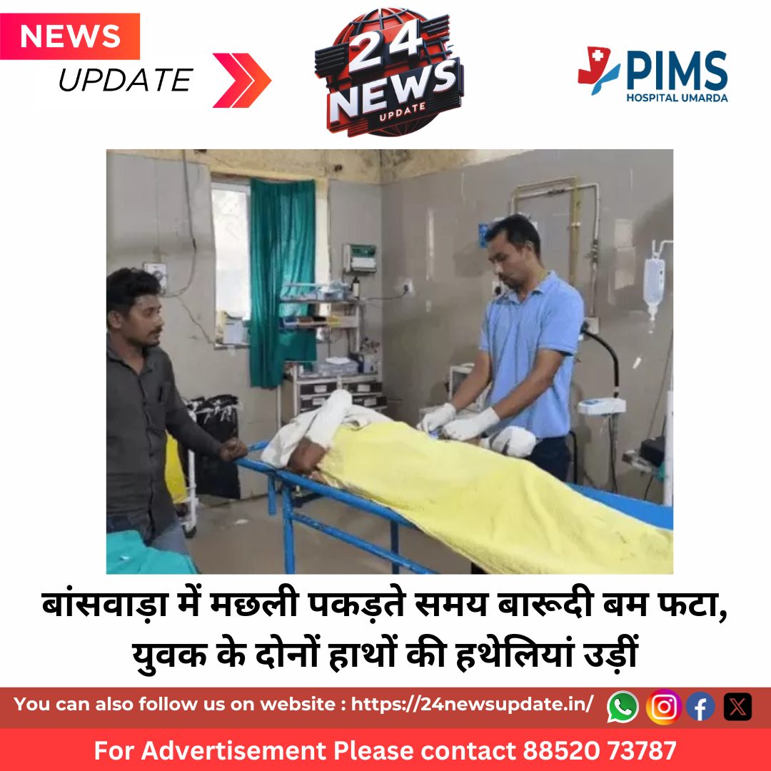 24 News Update बांसवाड़ा। जिले के तलवाड़ा थाना क्षेत्र के बदलिया त्रिपुरा सुंदरी गांव में सोमवार दोपहर एक दर्दनाक हादसा हो गया, जब तालाब में मछली पकड़ने गया युवक बारूदी बम फटने से गंभीर रूप से घायल हो गया। हादसे में युवक के दोनों हाथों की हथेलियों के चीथड़े उड़ गए और वह मौके पर ही खून से लथपथ होकर गिर पड़ा।धमाके की आवाज सुनकर आसपास के ग्रामीण मौके पर पहुंचे और घायल को तुरंत जिला अस्पताल पहुंचाया, जहां उसका इलाज जारी है। डॉक्टरों के अनुसार घायल की हालत गंभीर बनी हुई है। भतीजे ने बताई घटना की पूरी कहानीघायल के भतीजे राजू ने बताया कि उसका चाचा रमण (38) पुत्र बटू सोमवार दोपहर करीब 12 बजे गांव के पास स्थित तालाब में मछली पकड़ने गया था। इस दौरान उसके हाथ में रखा बारूदी टोटा (क्रूड बम) अचानक फट गया, जिससे उसके दोनों हाथ बुरी तरह क्षतिग्रस्त हो गए। उंगलियों की त्वचा कट-फट गई और हथेलियों के चीथड़े उड़ गए। अवैध तरीके से मछली शिकार का खुलासामामले की जांच में सामने आया कि तालाब में मछली पकड़ने के लिए अवैध रूप से बारूदी टोटों का इस्तेमाल किया जा रहा था। ग्रामीण अक्सर मछलियों की अधिकता वाले स्थानों पर छोटे विस्फोटक फोड़कर मछलियों को मारते हैं और बाद में उन्हें तालाब से निकाल लेते हैं। यह तरीका न केवल खतरनाक है बल्कि कानूनन प्रतिबंधित भी है। फिलहाल पुलिस में इस संबंध में कोई मामला दर्ज नहीं हुआ है, लेकिन घटना की सूचना तलवाड़ा थाना पुलिस को दे दी गई है। पहले भी हो चुके हैं ऐसे हादसेगौरतलब है कि इससे पहले भी खमेरा थाना क्षेत्र के सवनिया ग्राम पंचायत में गौतम (30) पुत्र नारायण के हाथ में बारूदी बम फटने से घायल हो गया था। उस समय भी युवक को गंभीर हालत में जिला अस्पताल में भर्ती कराया गया था। Share this: Share on X (Opens in new window) X Share on Facebook (Opens in new window) Facebook More Email a link to a friend (Opens in new window) Email Share on WhatsApp (Opens in new window) WhatsApp Like this:Like Loading... Related Discover more from 24 News Update Subscribe to get the latest posts sent to your email. Type your email… Subscribe Post navigation सरकारी नौकरी छोड़ संत बने बांसवाड़ा के दिशांत — माँ-बाप के इकलौते बेटे ने सांसारिक सुखों से मुंह मोड़ चुना वैराग्य मार्ग बांसवाड़ा में फिर फटा बारूदी टोटा: मछली पकड़ने गया युवक गंभीर रूप से घायल, 6 दिन में तीसरा हादसा