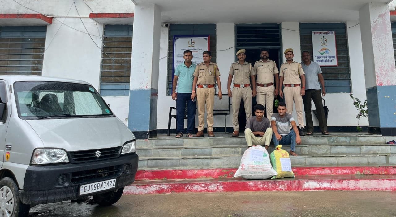 दिनांक 22 अगस्त 2025 को नाकाबंदी के दौरान ईको कार नंबर GJ 09 BN 3422 को रोककर चालक और उसके साथी से पूछताछ की गई। गाड़ी की तलाशी लेने पर उसमें अवैध गांजा बरामद हुआ। एनडीपीएस एक्ट के तहत कार्यवाही करते हुए कुल 12 किलो 650 ग्राम अवैध सूखा गांजा ईको कार सहित जब्त किया गया। साथ ही चालक फिरदोस खान पुत्र फरीद खान निवासी शीतलामाता मंदिर के पास, थाना कोटडा जिला उदयपुर एवं उसका साथी विक्रम पुत्र भरत निवासी लाम्बा हल्दु, थाना कोटडा जिला उदयपुर को गिरफ्तार किया गया। इस संबंध में प्रकरण संख्या 134/2025 धारा 8/20 एनडीपीएस एक्ट में दर्ज कर अग्रिम अनुसंधान प्रारंभ किया गया है।