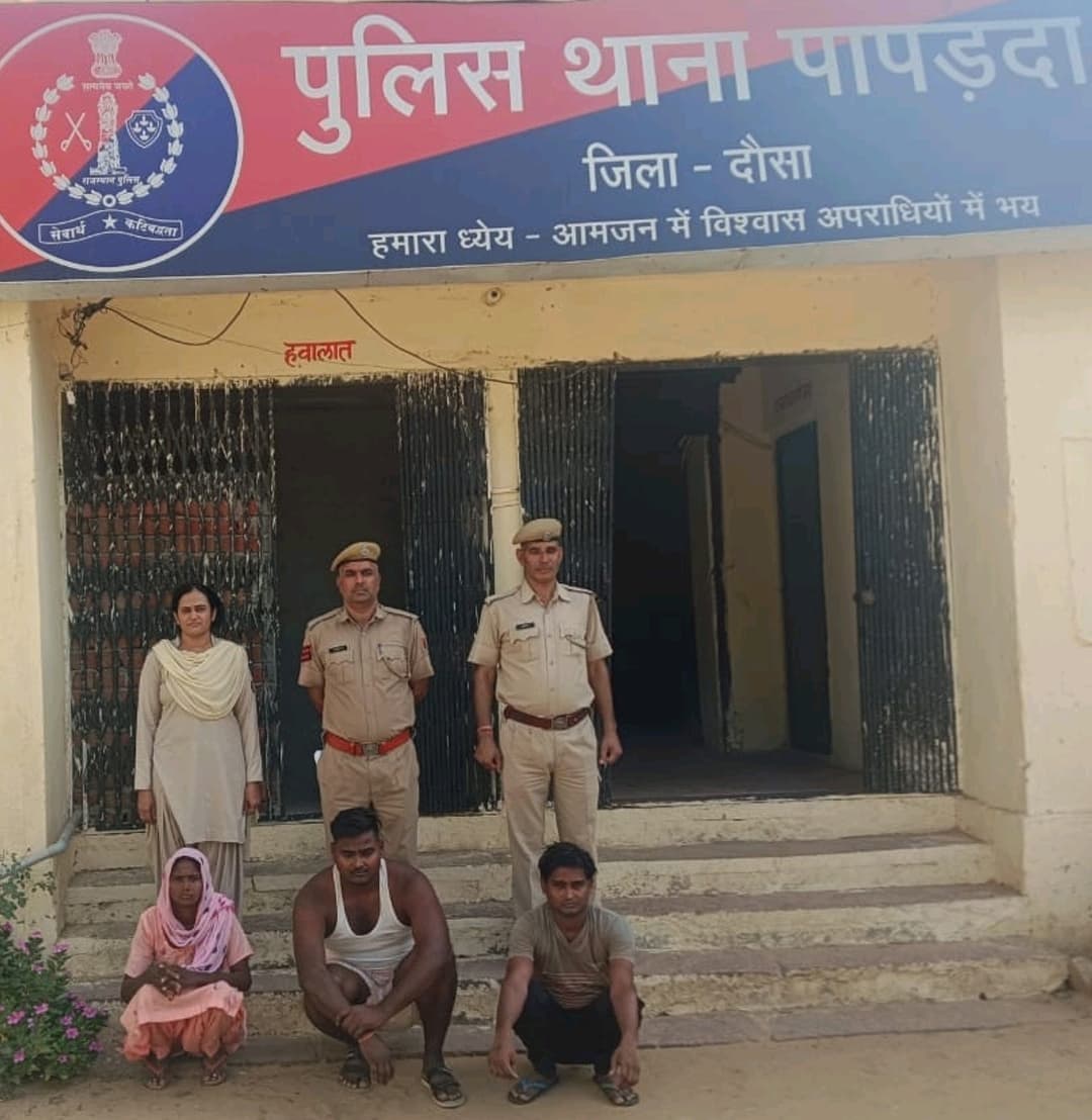 जयपुर रेंज पुलिस महानिरीक्षक अजयपाल लांबा और एसपी दौसा सागर राणा के निर्देशों पर तथा अतिरिक्त पुलिस अधीक्षक लालसोट दिनेश अग्रवाल व नांगल राजावतान की सीओ चारुल गुप्ता के सुपरविजन में यह बड़ी कार्रवाई की गई। पापड़दा थानाधिकारी संतचरण सिंह के नेतृत्व में गठित टीम ने हत्या के तीन आरोपियों को गिरफ्तार करने में सफलता हासिल की, जिसमें मानपुर थाना पुलिस का भी पूरा सहयोग मिला।
