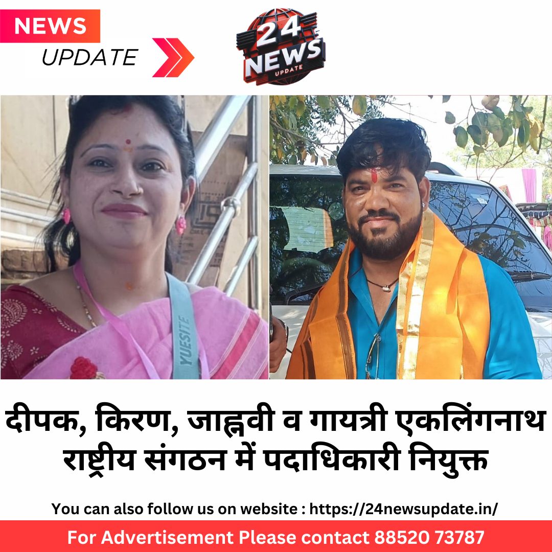 24 न्यूज़ अपडेट उदयपुर। श्री एकलिंगनाथ राष्ट्रीय संगठन संस्थापक अध्यक्ष आकाश बागडी ने संगठन का विस्तार करते हुए पदाधिकारियों की नियुक्तियां की है जो संगठन को आगे बढाने में मदद करेंगे।