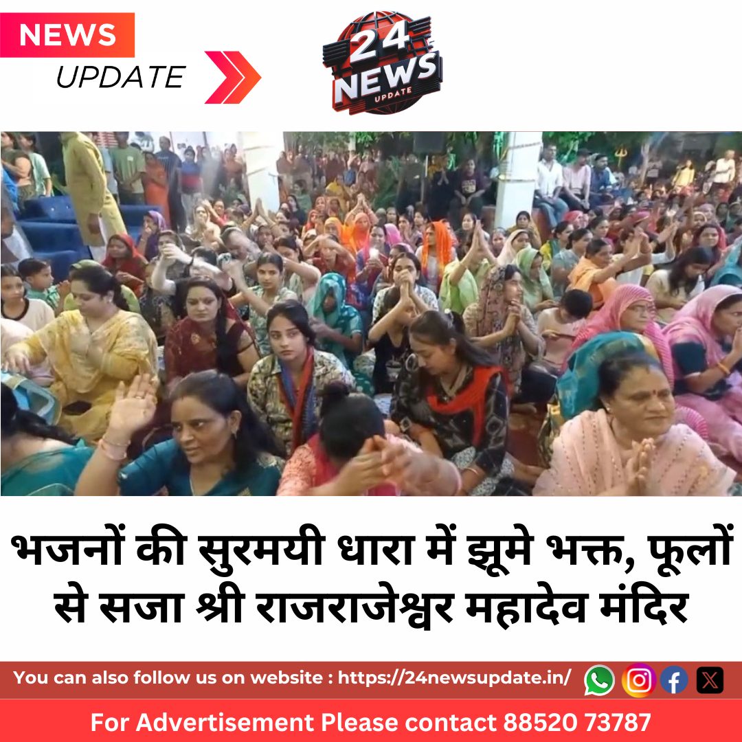 24 News Update उदयपुर। पवित्र सावन माह के उपलक्ष्य में टेकरी स्थित श्री राजराजेश्वर महादेव मंदिर में खाटू नरेश बाबा श्याम का भव्य झूला महोत्सव श्रद्धा और उल्लास के साथ मनाया गया। इस अवसर पर दिल्ली से मंगवाया गया विशेष शृंगार बाबा को अर्पित किया गया, जिससे मंदिर परिसर भक्ति भाव से आलोकित हो उठा। महोत्सव में बड़ी संख्या में श्रद्धालु बाबा श्याम के अलौकिक दर्शन करने मंदिर पहुँचे। श्रद्धालुओं ने बाबा को झूले पर विराजित देख नतमस्तक होकर आशीर्वाद प्राप्त किया। इस अवसर पर प्रसिद्ध भजन गायकों ने एक से बढ़कर एक भजनों की प्रस्तुतियां दीं, जिनकी स्वर लहरियों में समस्त भक्तगण झूमते और नाचते दिखाई दिए।बाबा श्याम को छप्पन भोग अर्पित कर भक्ति भाव से पूजा-अर्चना की गई। मंदिर को रंग-बिरंगे और सुगंधित फूलों से भव्य रूप से सजाया गया था, जो श्रद्धालुओं के आकर्षण का केंद्र बना रहा।सावन माह के इस विशेष पर्व पर आयोजित यह झूला महोत्सव भक्तों के लिए आध्यात्मिक आनंद और भक्ति रस का अनुपम संगम बन गया। आयोजकों के अनुसार, आगामी सावन सोमवार तक मंदिर में विशेष झांकी एवं भजन संध्याएं आयोजित की जाएंगी। Share this: Share on X (Opens in new window) X Share on Facebook (Opens in new window) Facebook More Email a link to a friend (Opens in new window) Email Share on WhatsApp (Opens in new window) WhatsApp Like this:Like Loading... Related Discover more from 24 News Update Subscribe to get the latest posts sent to your email. Type your email… Subscribe Post navigation भैंस चोरी गिरोह का पर्दाफाशः पांच नशेड़ी गिरफ्तार, दो भैंसें और पिकअप वाहन बरामद डॉ. रचना राठौड़ व डॉ. इंदु बाला आचार्य की पुस्तक ‘भौतिक विज्ञान शिक्षण’ का विमोचन, विद्यापीठ बीएड महाविद्यालय का स्थापना दिवस हर्षोल्लास से मनाया