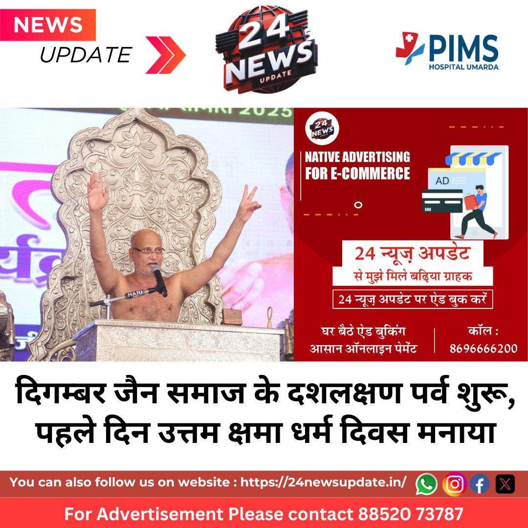 24 News Update उदयपुर। राष्ट्रसंत आचार्य पुलक सागर ससंघ का चातुर्मास सर्वऋतु विलास मंदिर में बड़ी धूमधाम से आयोजित हो रहा है । इसी श्रृंखला में गुरुवार को पहले दिन उत्तम क्षमा धर्म दिवस मनाया गया, दशलक्षण पर्व 06 सितंबर तक चलेंगे । राष्ट्रसंत आचार्य पुलक सागर के सानिध्य में टाउन हॉल में पाप नाशनम शिविर शुरू हुआ, जिसमें 700 शिविरार्थियों ने एक जैसे वस्त्र पहन कर शिविर में भाग लिया । चातुर्मास समिति के अध्यक्ष विनोद फांदोत ने बताया कि पहली बार आचार्य पुलक सागर महाराज के सानिध्य में दिगम्बर समाज के सभी पंथों का पर्युषण पर्व मनाया जा रहा है, जिसमें 5 मंदिरों की प्रतिमाओं को बुधवार सायं 4.30 बजे सर्वऋतु विलास मंदिर से शोभायात्रा के रूप में पालकी में टाउन हॉल लाया गया । कार्यक्रम की श्रृंखला में प्रात: 5.30 बजे प्राणायाम, प्रातः: 7.30 बजे अभिषेक हुआ, उसके बाद शांतिधारा एवं पूजन सम्पन्न हुई । प्रात: 9.30 बजे आचार्यश्री का विशेष प्रवचन उत्तम क्षमा धर्म पर हुआ, जिसमें आचार्यश्री ने कहा कि क्षमा में माँ छिपी है। जिस प्रकार एक माँ अत्यन्त क्षमाशील होती है, उसी प्रकार धर्म के प्रमुख दस लक्षणों में उत्तम क्षमा की शक्ति अनन्त और अतुल्य है। उत्तम क्षमा साधुता की परिचायक है । साधु धर्म के इस महालक्षण का पालन दृढ़ता से करते हैं। श्रावक और साधक को जीवन में क्रोध पर विजय पाने के लिए क्षमा का गुण अपनाना चाहिए। धर्म क्षमा है और चर्चा क्रोध की हो तो सुनने में अचरज भरा लग सकता है, लेकिन क्षमा के गुण के ज्ञान हेतु चर्चा क्रोध की होना पूर्णत: मनोवैज्ञानिक है, क्योंकि सारी दुनिया जितनी क्रोध से परिचित है, उतनी क्षमा से नहीं है। यह नियम है कि हमेशा परिचित से अपरिचित का ज्ञान होता है इसलिए अपरिचित क्षमा को समझने के लिए चिर परिचित अनुभूत क्रोध को समझना आवश्यक है। क्रोधादि कषाय हर भूमिका में बुरे थे, बुरे हैं और बुरे रहेंगे इसलिए पर्युषण महापर्व अपनी सार्वभौमिकता को भी प्रमाणित करता है। वैदिक धर्म कहता है कि एक दिन सृष्टि का विनाश होगा, जैन धर्म भी कहता है, महाप्रलय होगा। कुरान कहती है कि कयामत आएगी। मिटना संसार का स्वभाव है। परिवर्तन सृष्टि की प्रकृति है। वो कौन है जो हमें बोलना, चलना, देखना और जानना सिखाता है? भूख और प्यास का आभास देने वाली शक्ति कौन है? वो तत्त्व कौनसा है, जो जीवन प्रदाता है तथा हमारे जीवन से निकल जाए तो सम्पूर्ण जीवन सारहीन हो जाता है? इन सबका उत्तर पाने के लिए हमें परमात्मा की शक्ति पहचानने वाली साधना की शरण लेनी होगी।